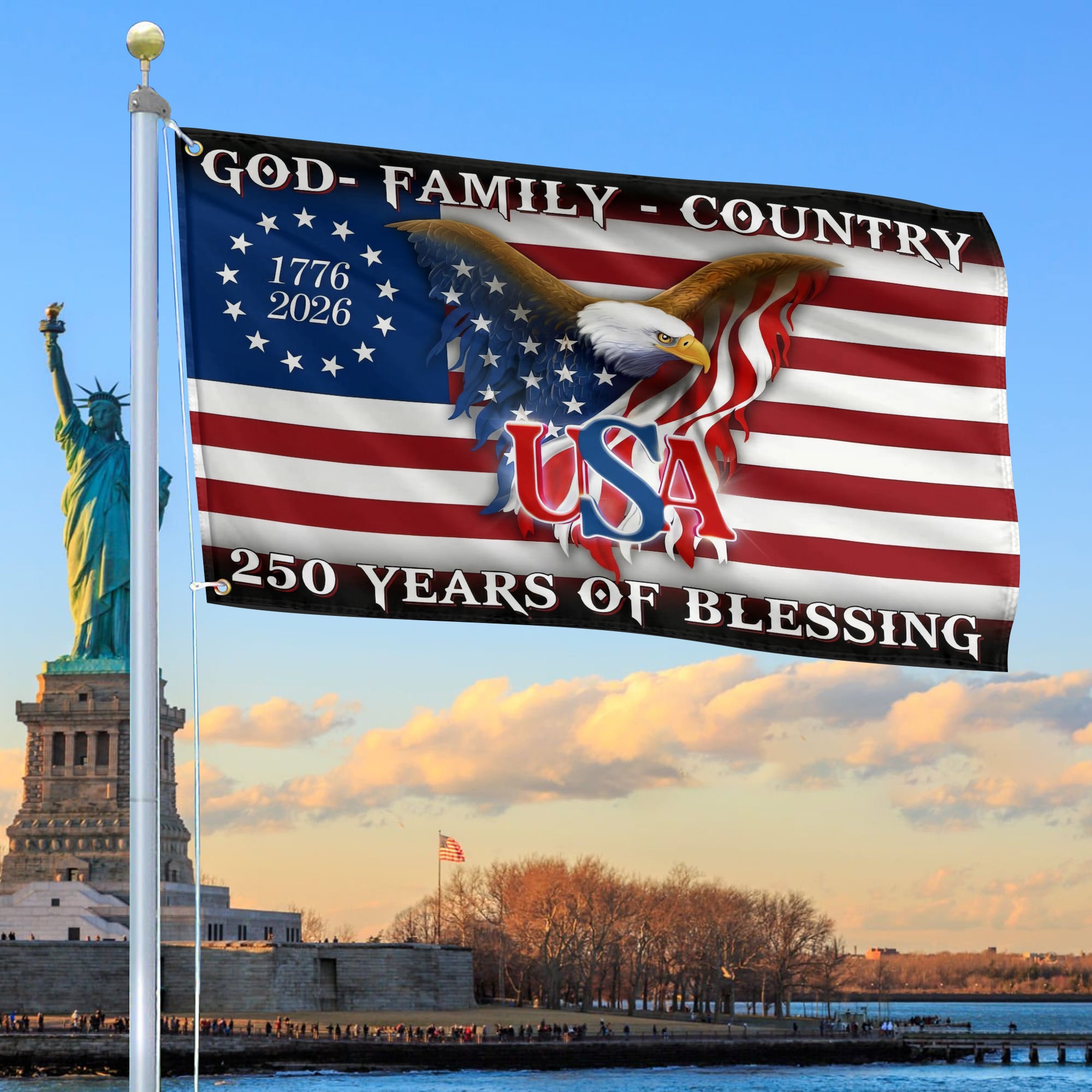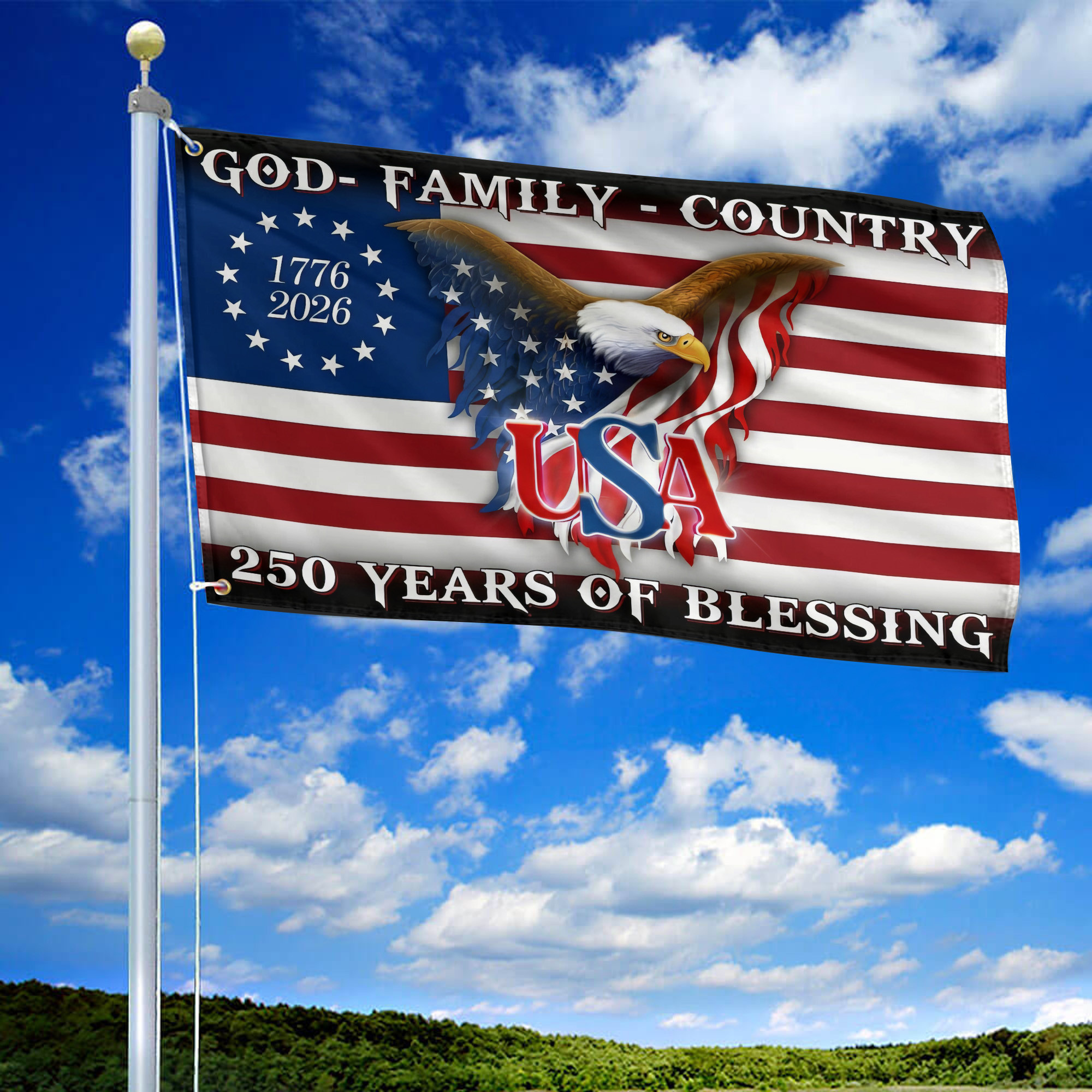 Premium America 250th Anniversary Grommet Flag VPVC120108, America 250th Flag, America 250th Birthday, Best Gifts On Independence Day, Veterans Day.