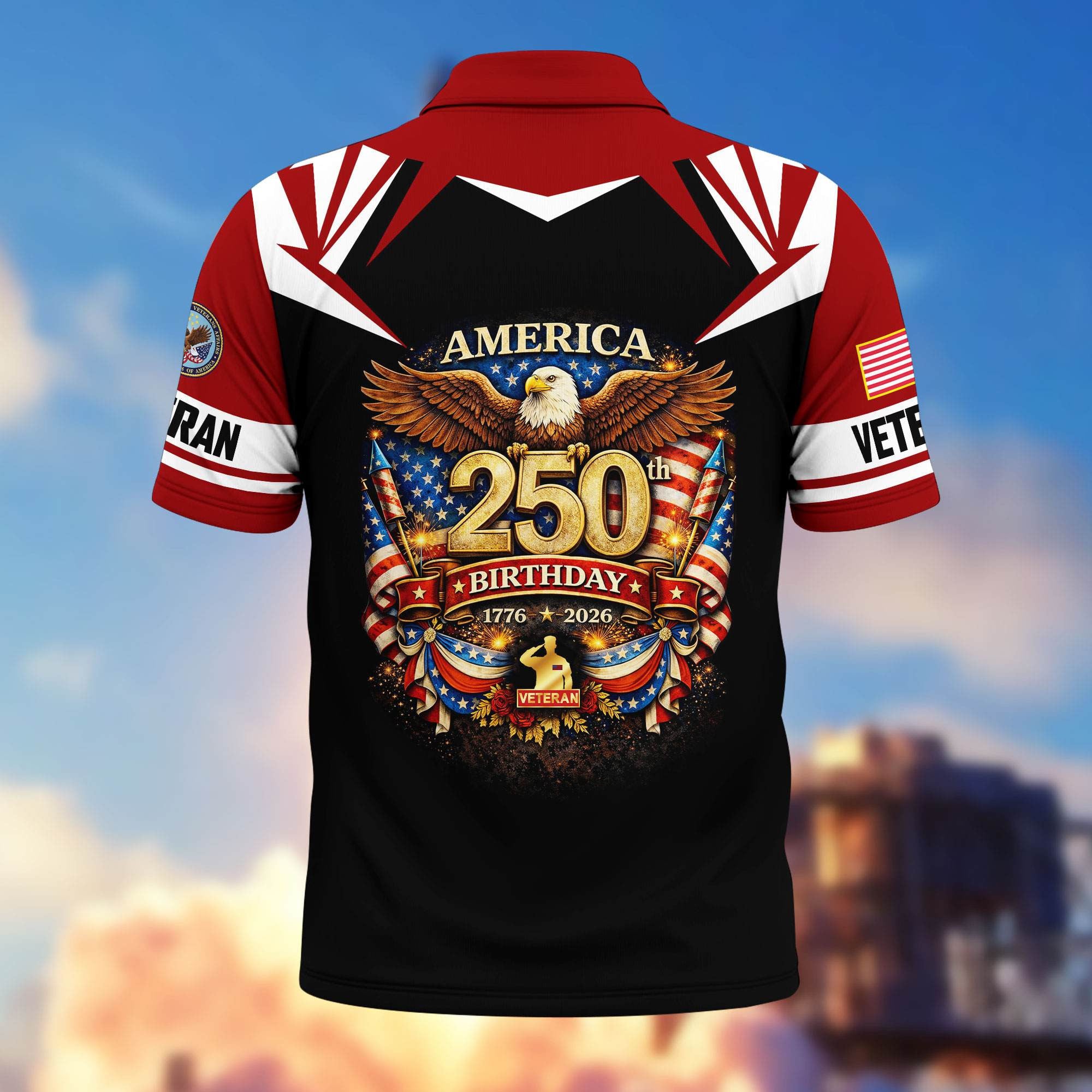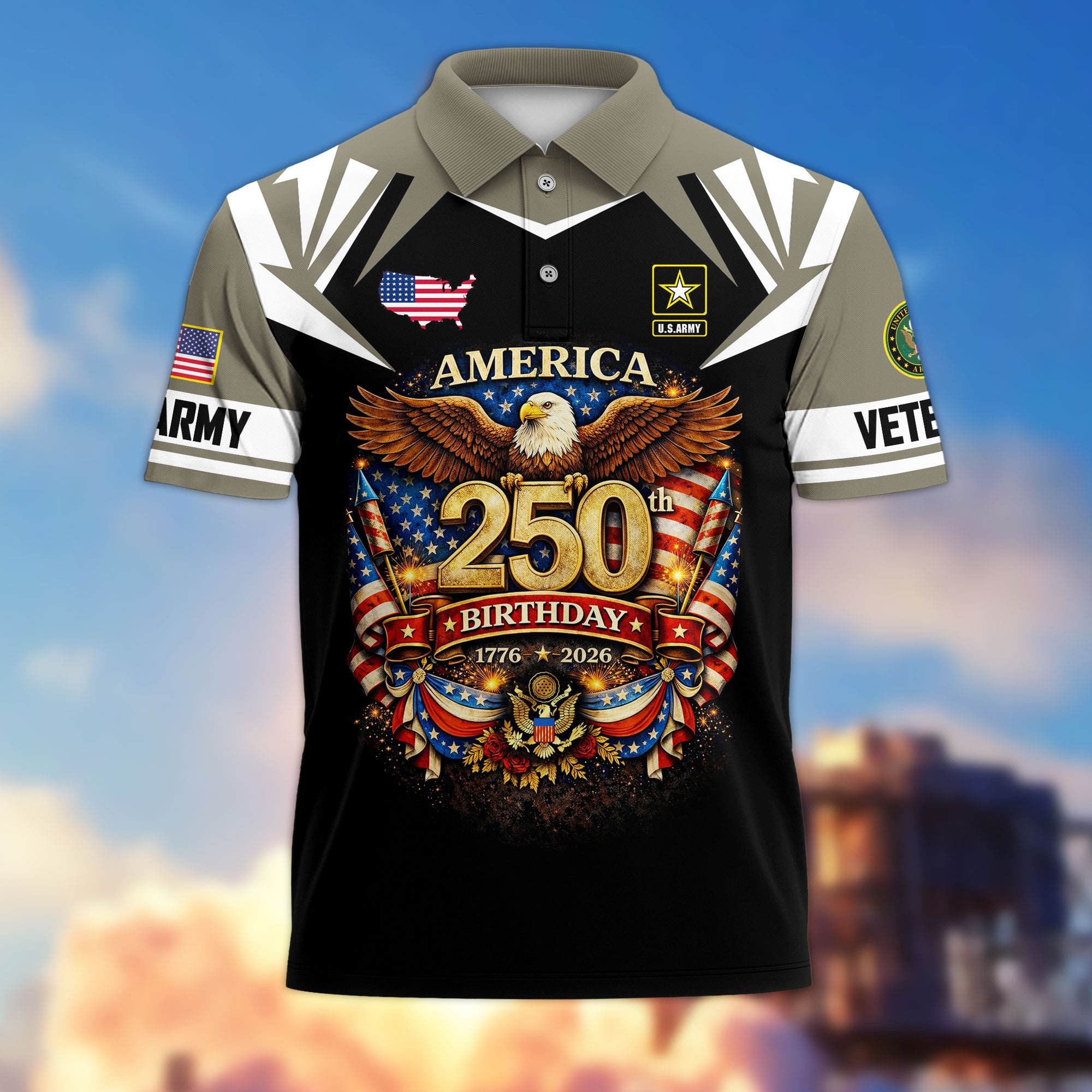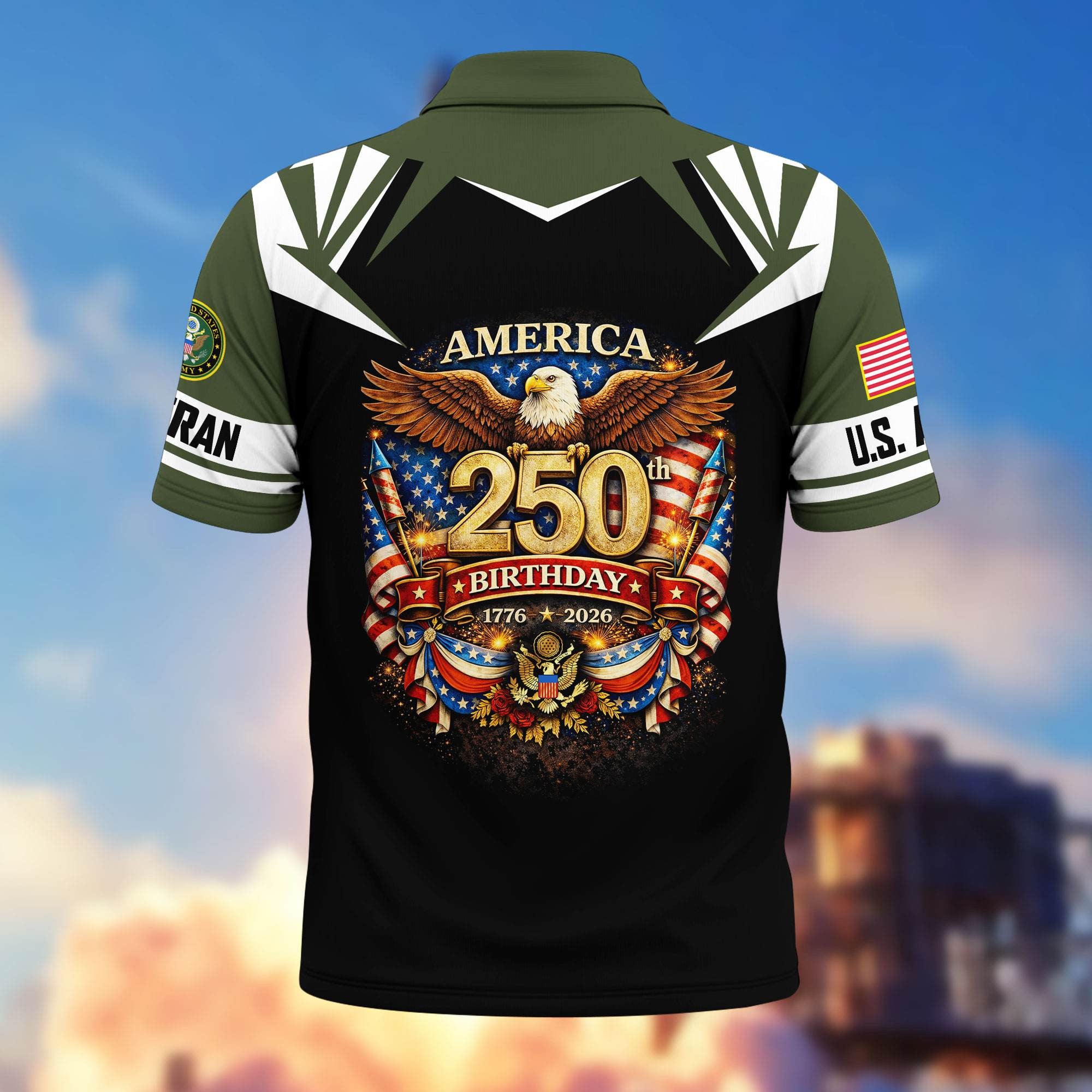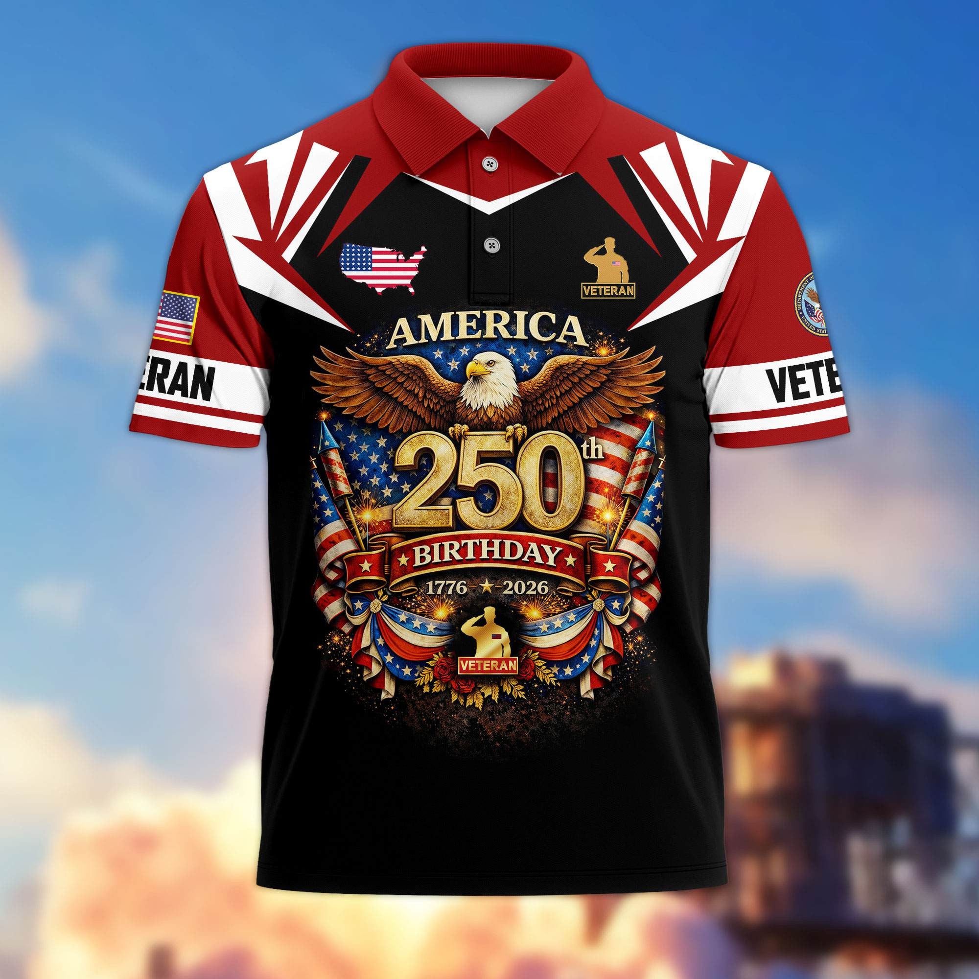 Premium America 250th Anniversary US Veteran Polo Shirt ATTN020221, Gifts for U.S. Veterans, Gifts for Independence Day, Veterans Day