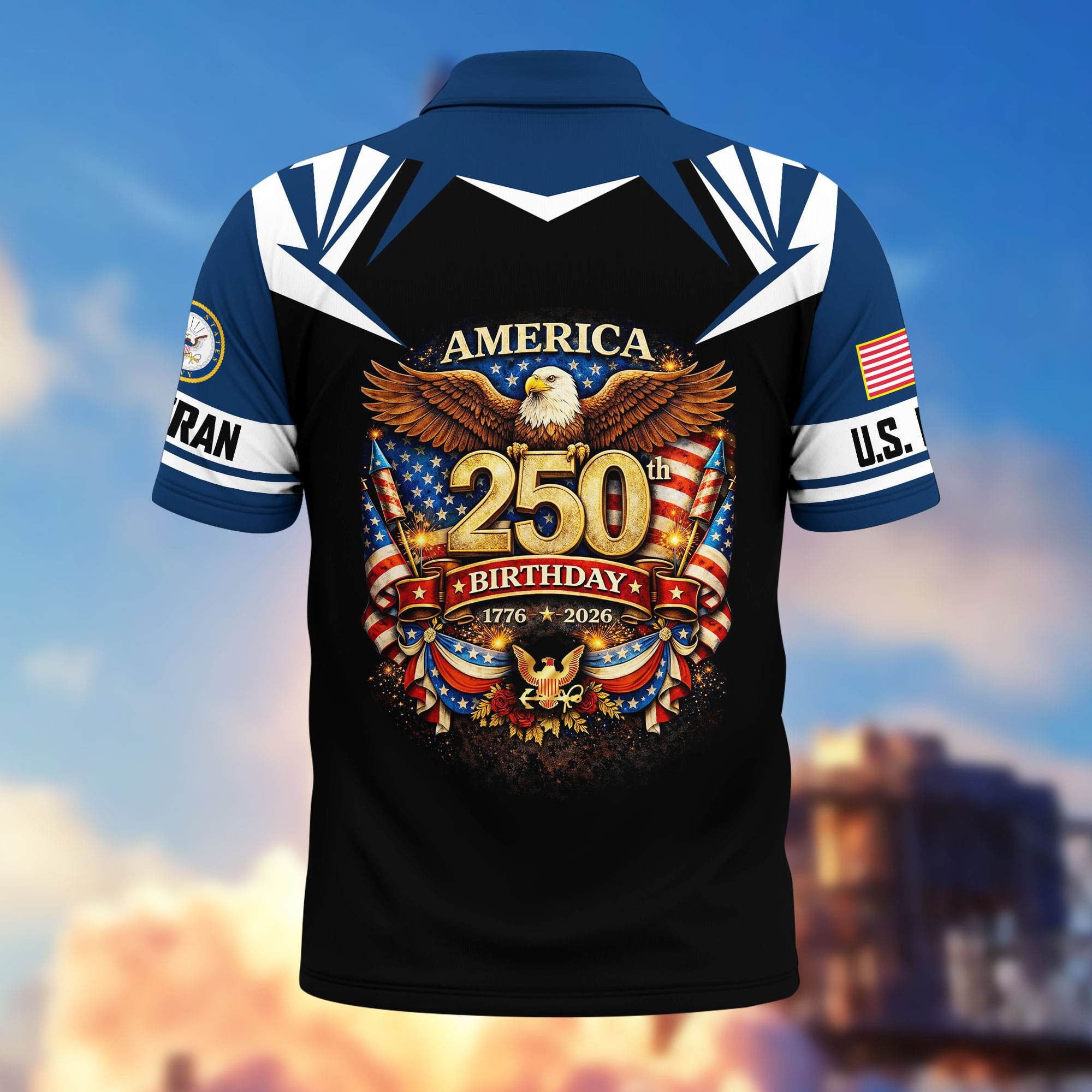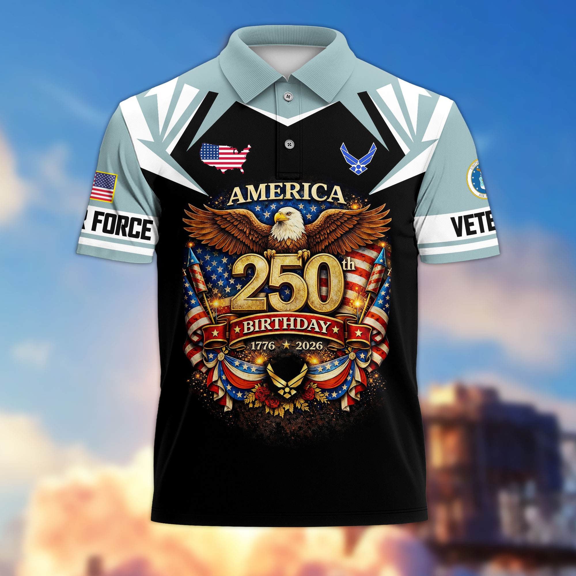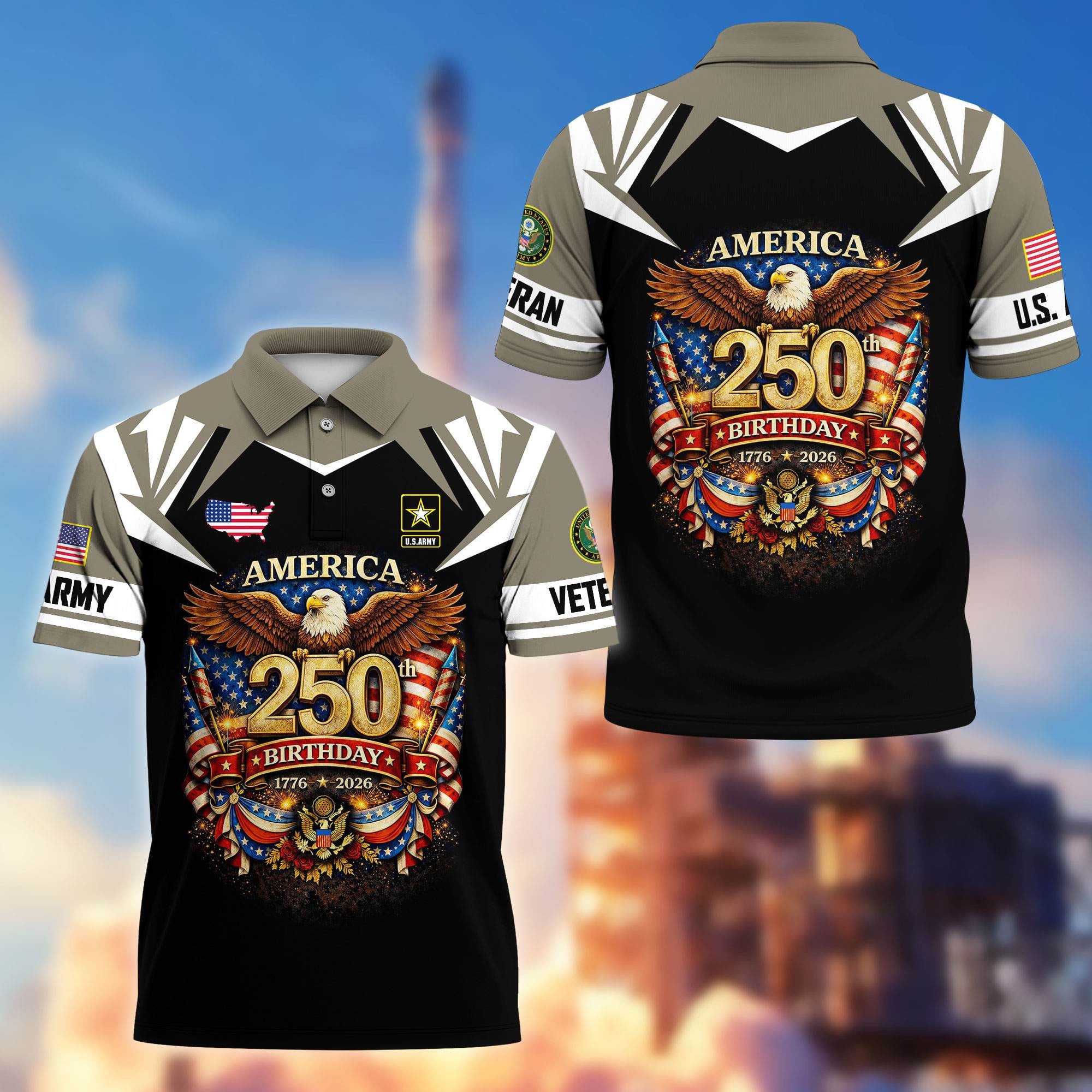 Premium America 250th Anniversary US Veteran Polo Shirt ATTN020221, Gifts for U.S. Veterans, Gifts for Independence Day, Veterans Day