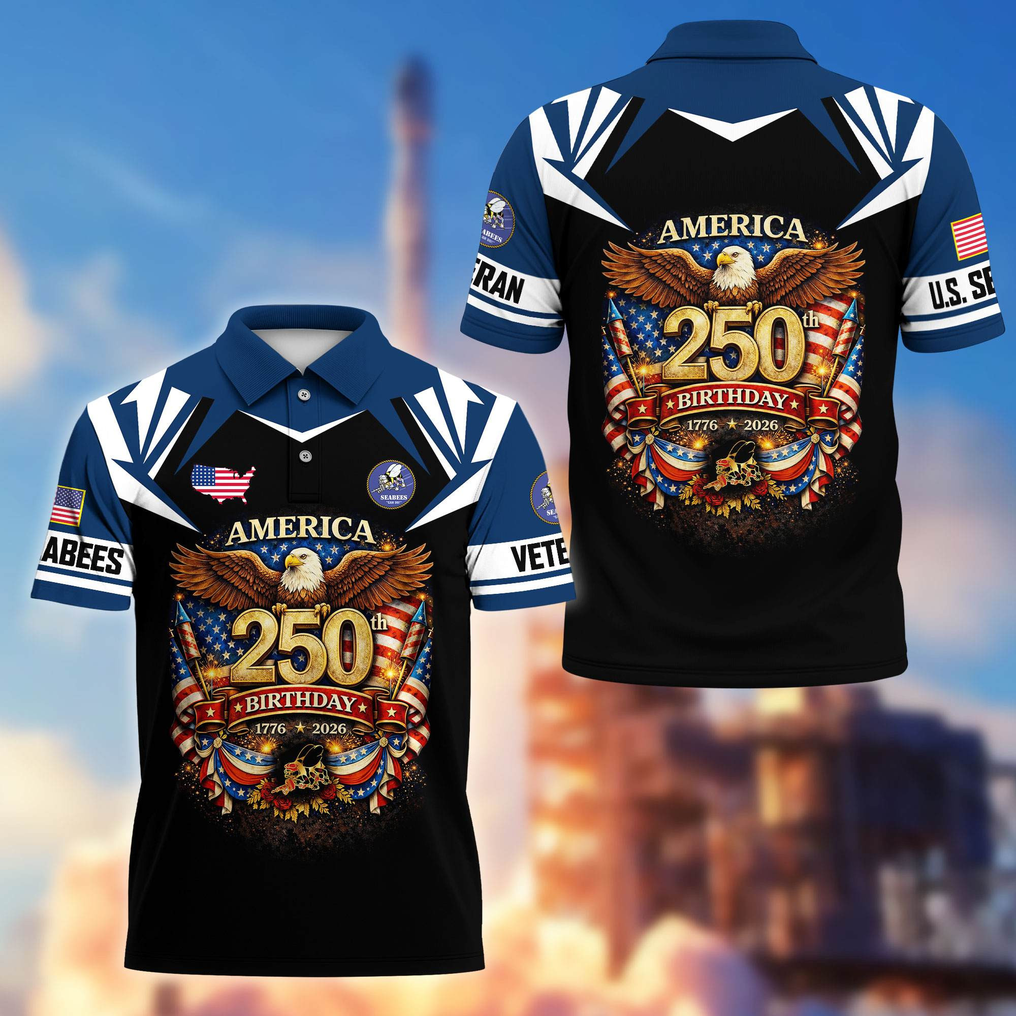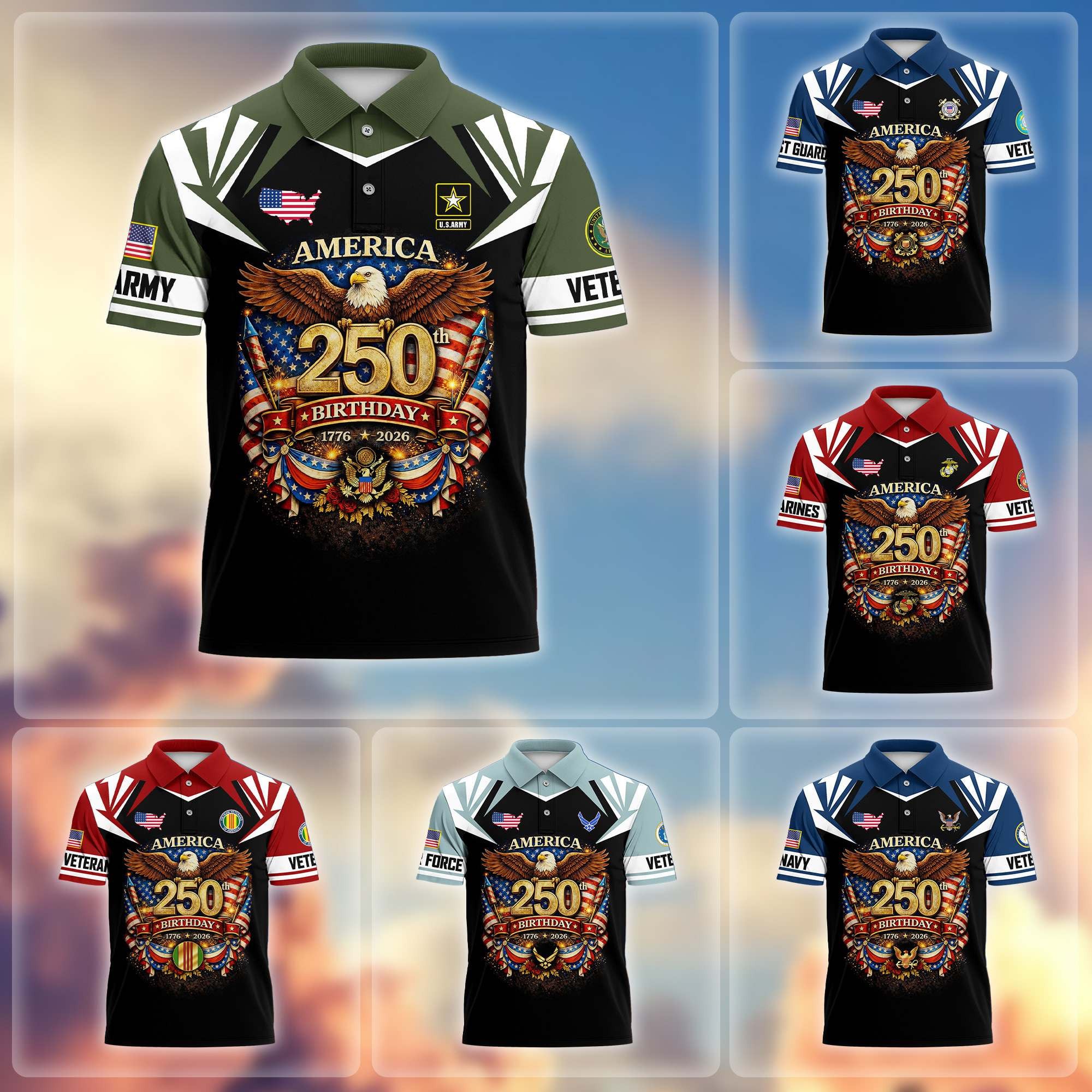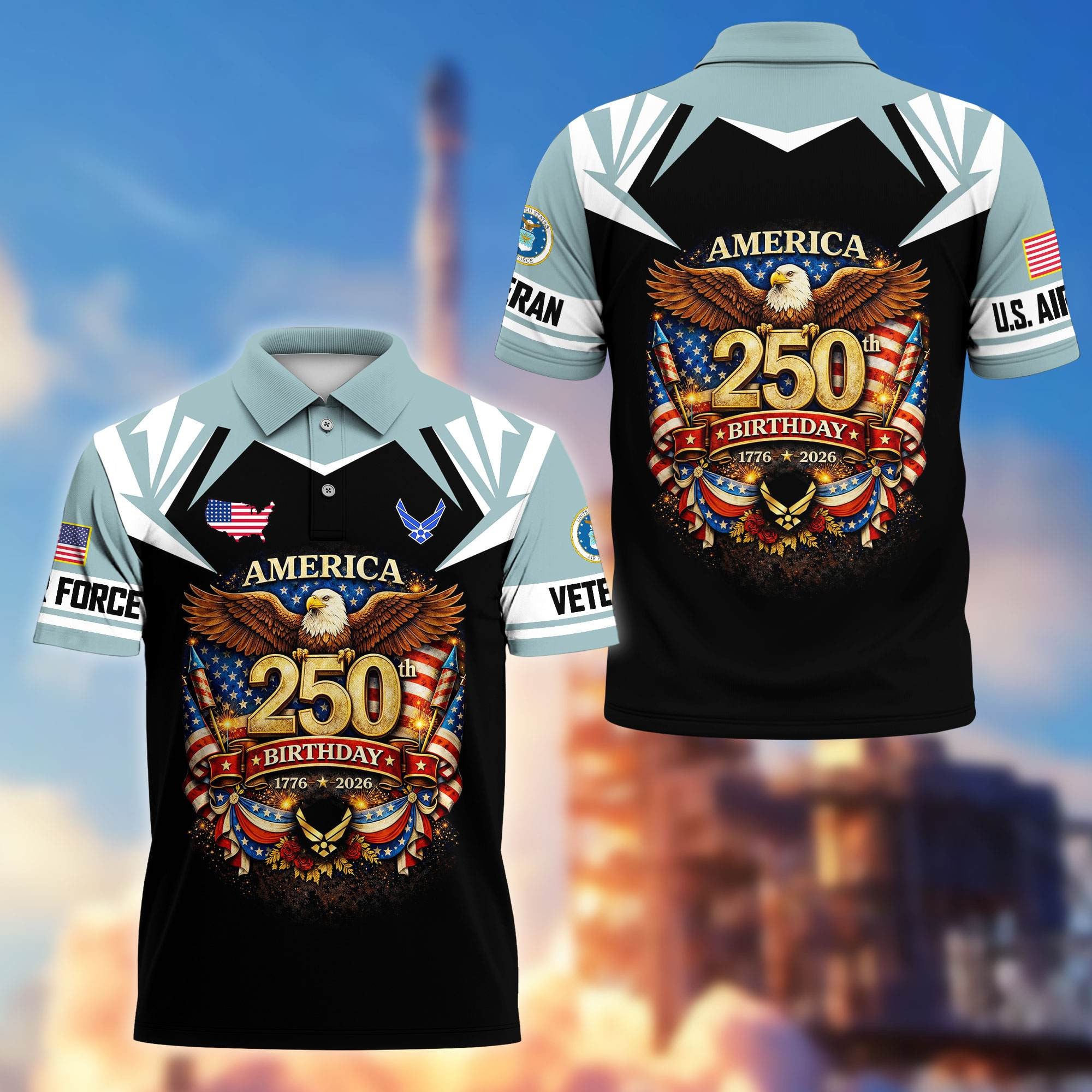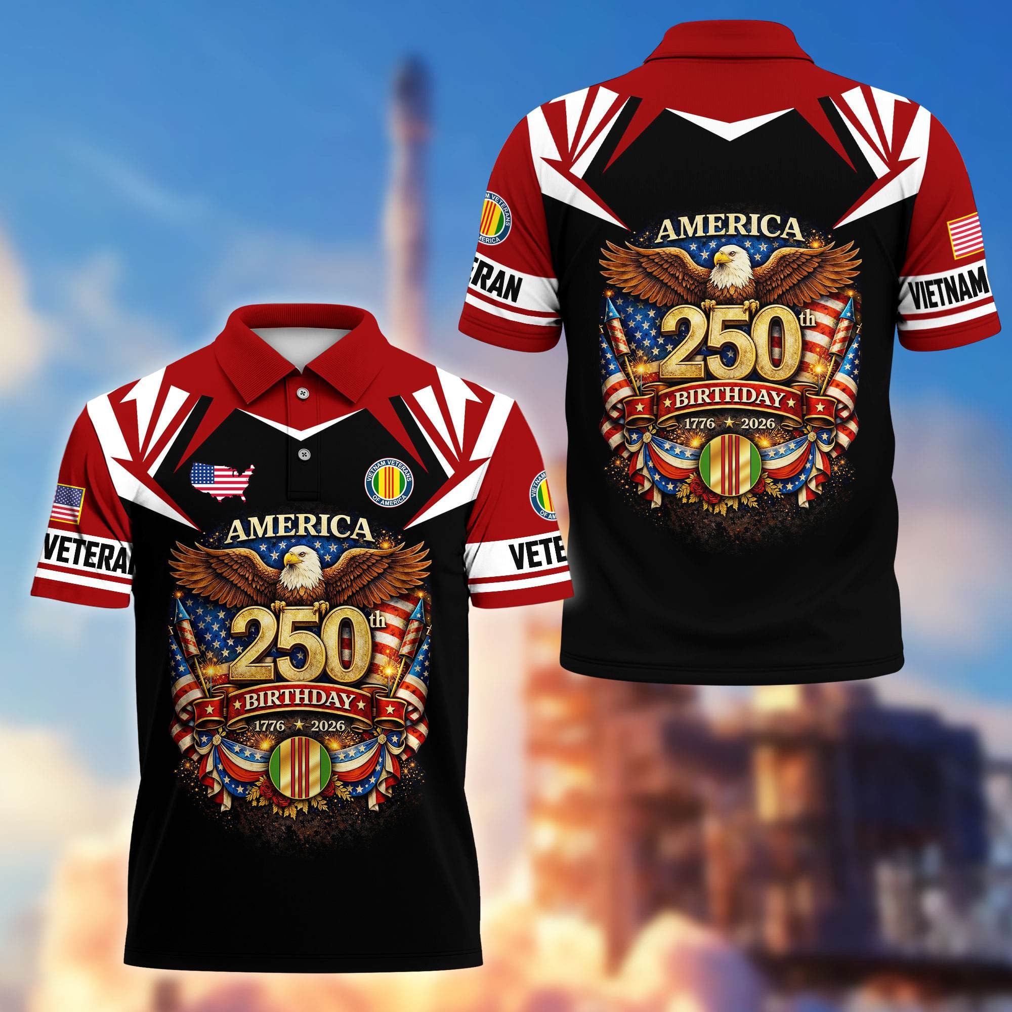 Premium America 250th Anniversary US Veteran Polo Shirt ATTN020221, Gifts for U.S. Veterans, Gifts for Independence Day, Veterans Day