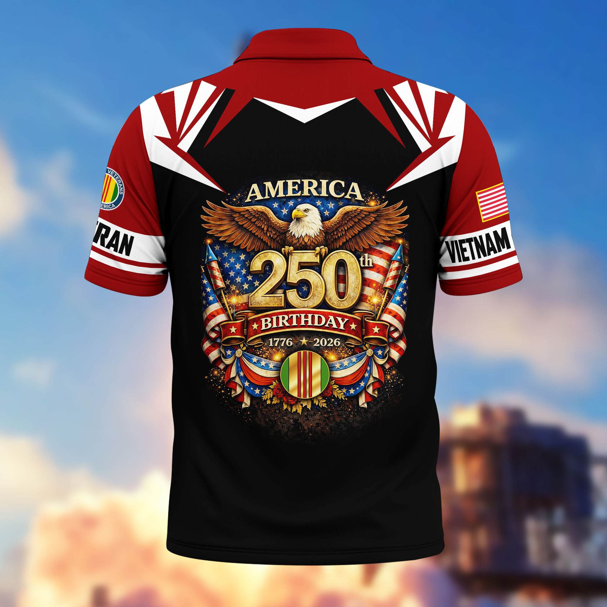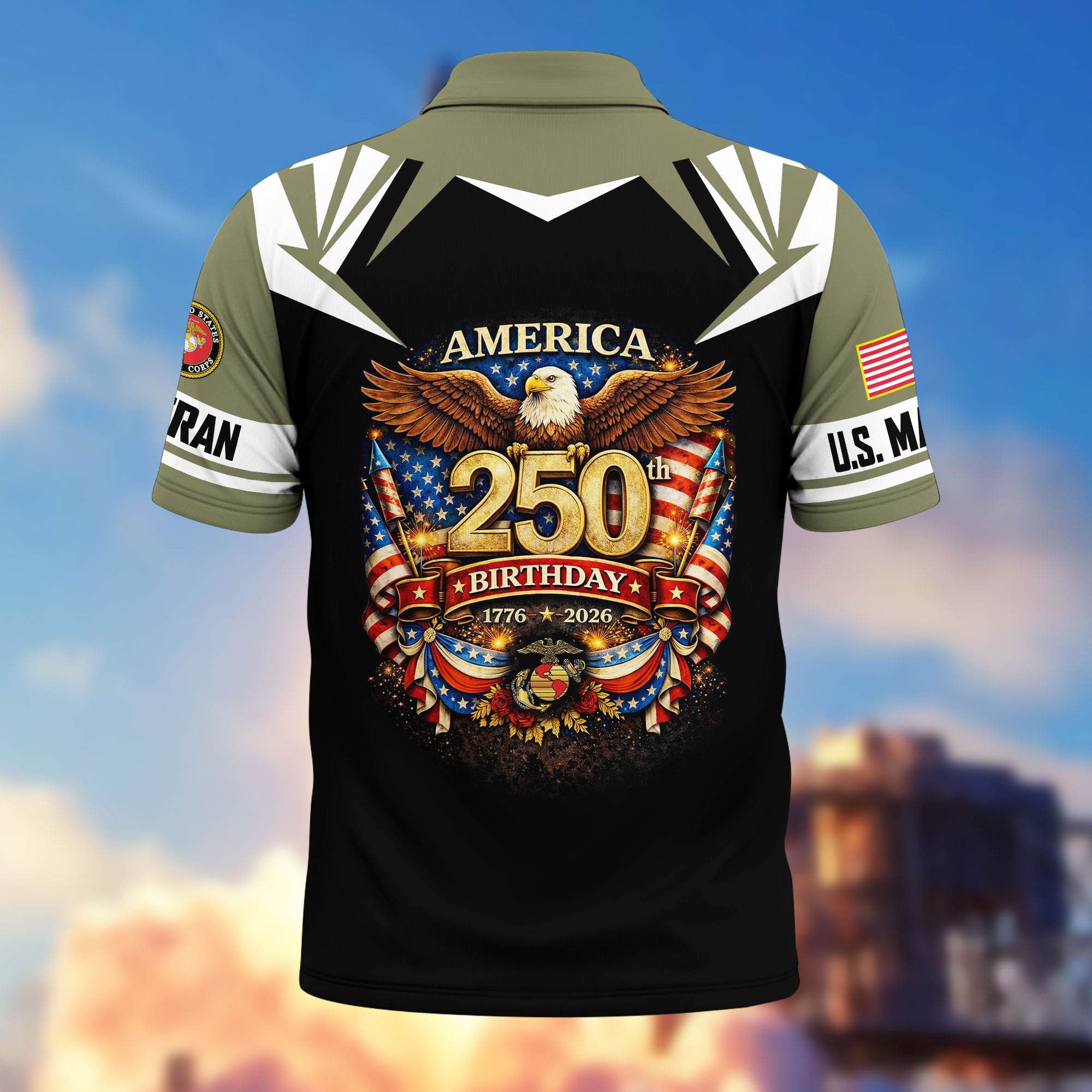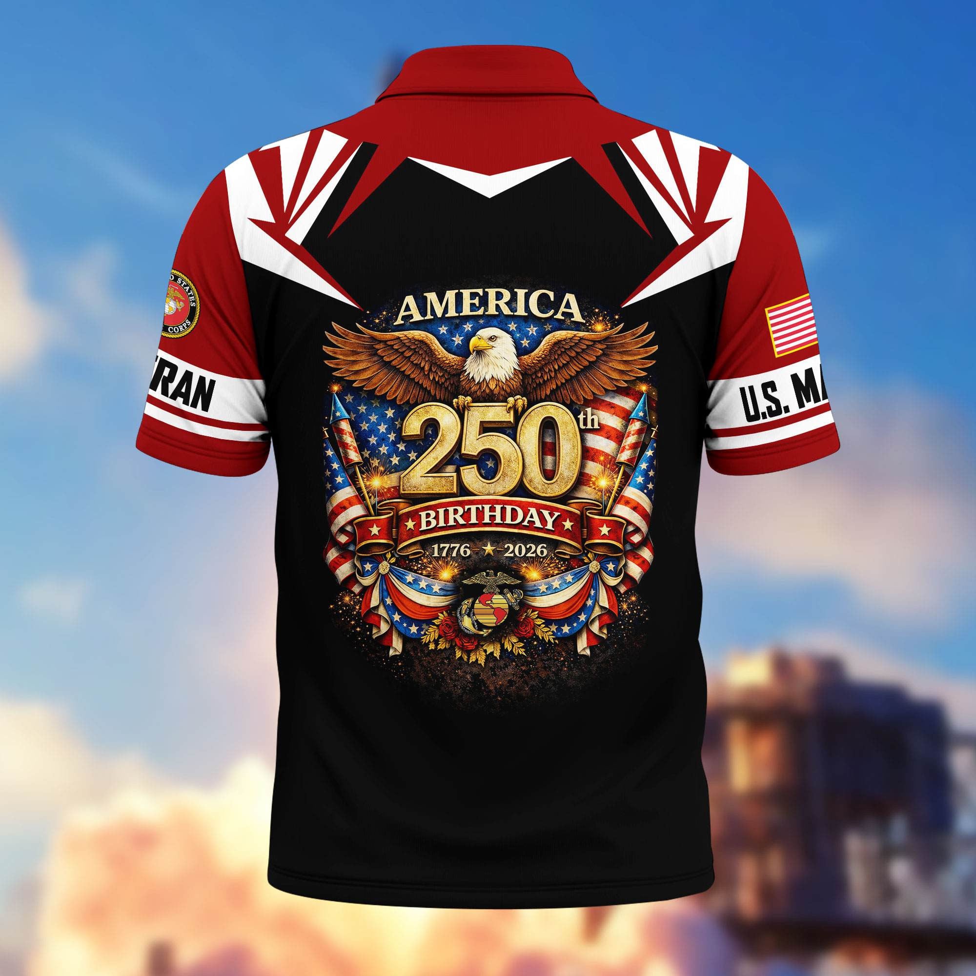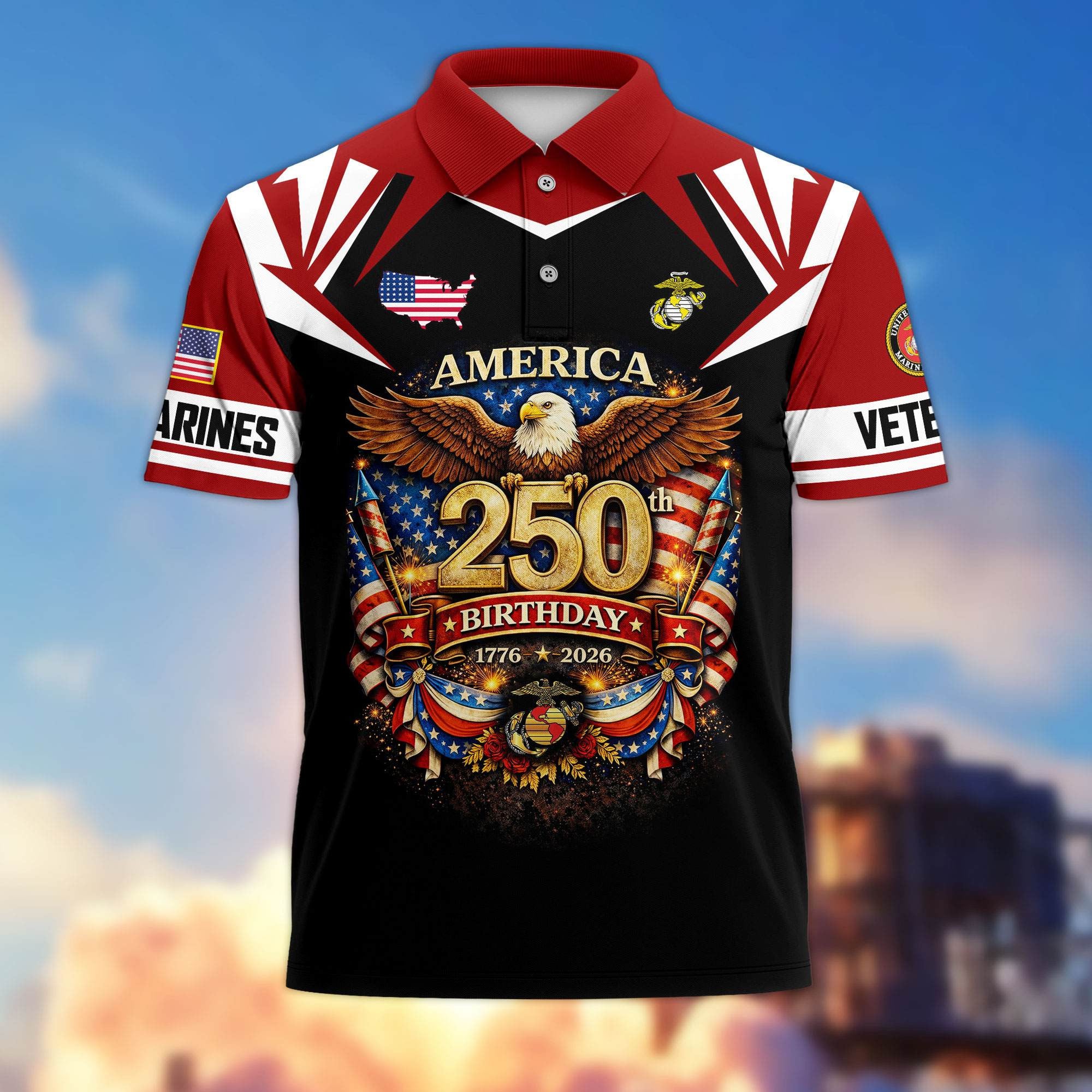Premium America 250th Anniversary US Veteran Polo Shirt CPHN050311, Gifts for U.S. Veterans, Gifts for Independence Day, Veterans Day