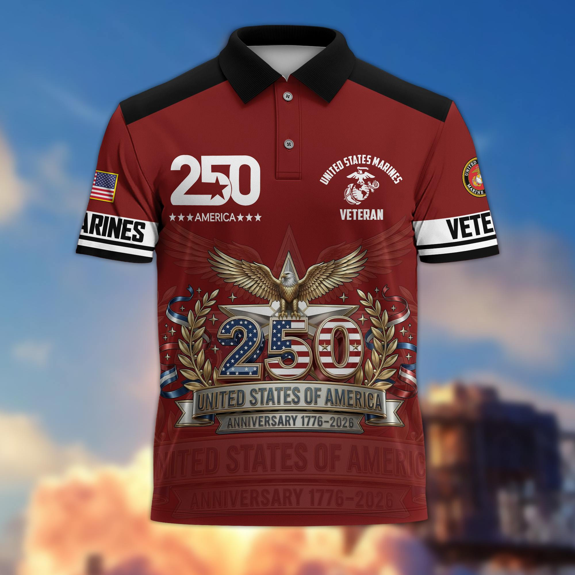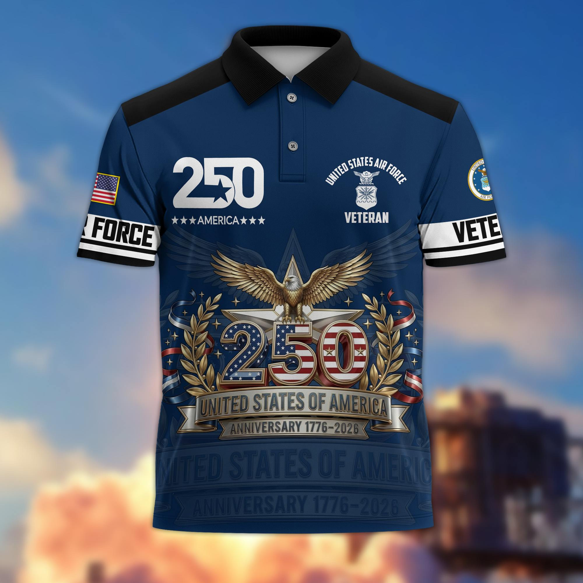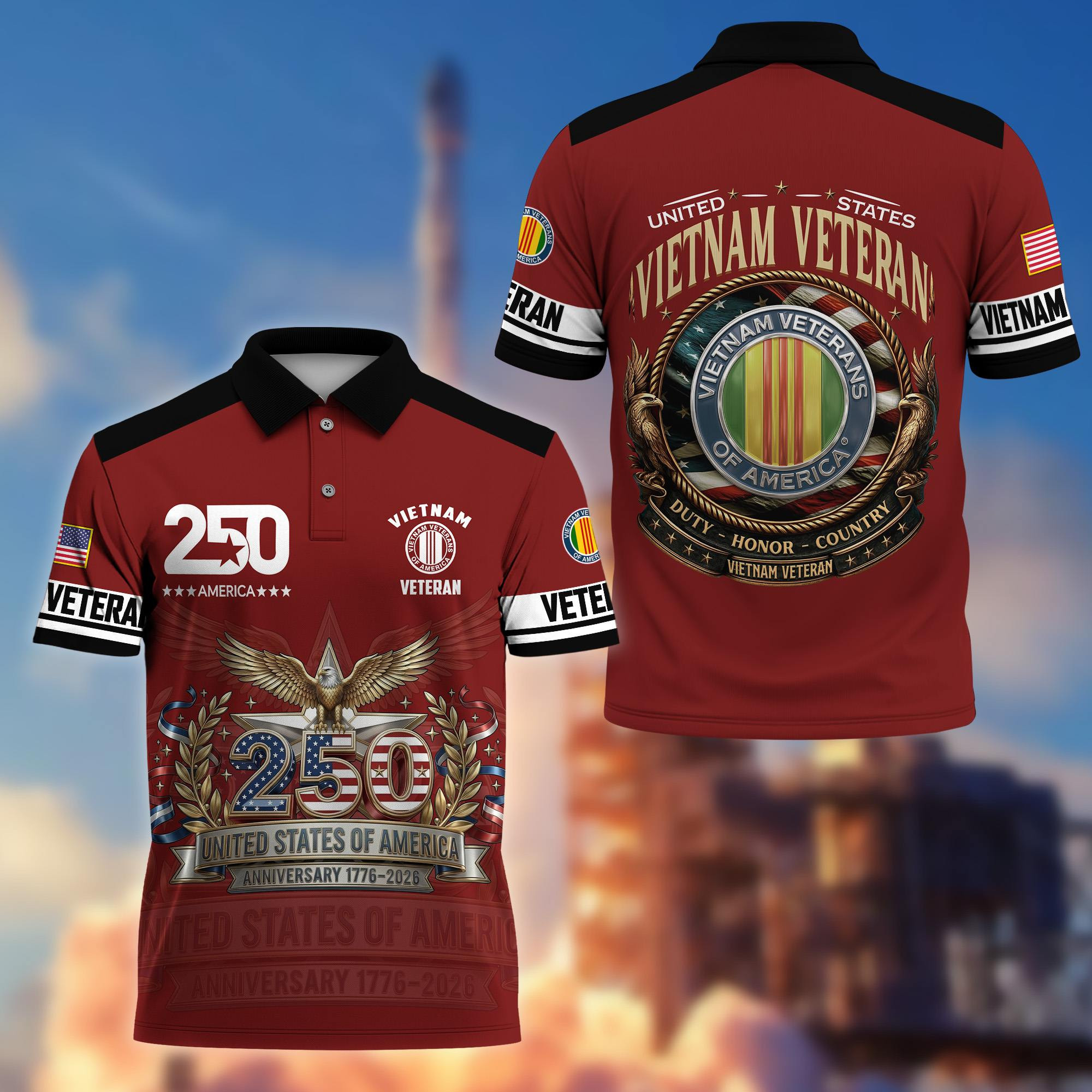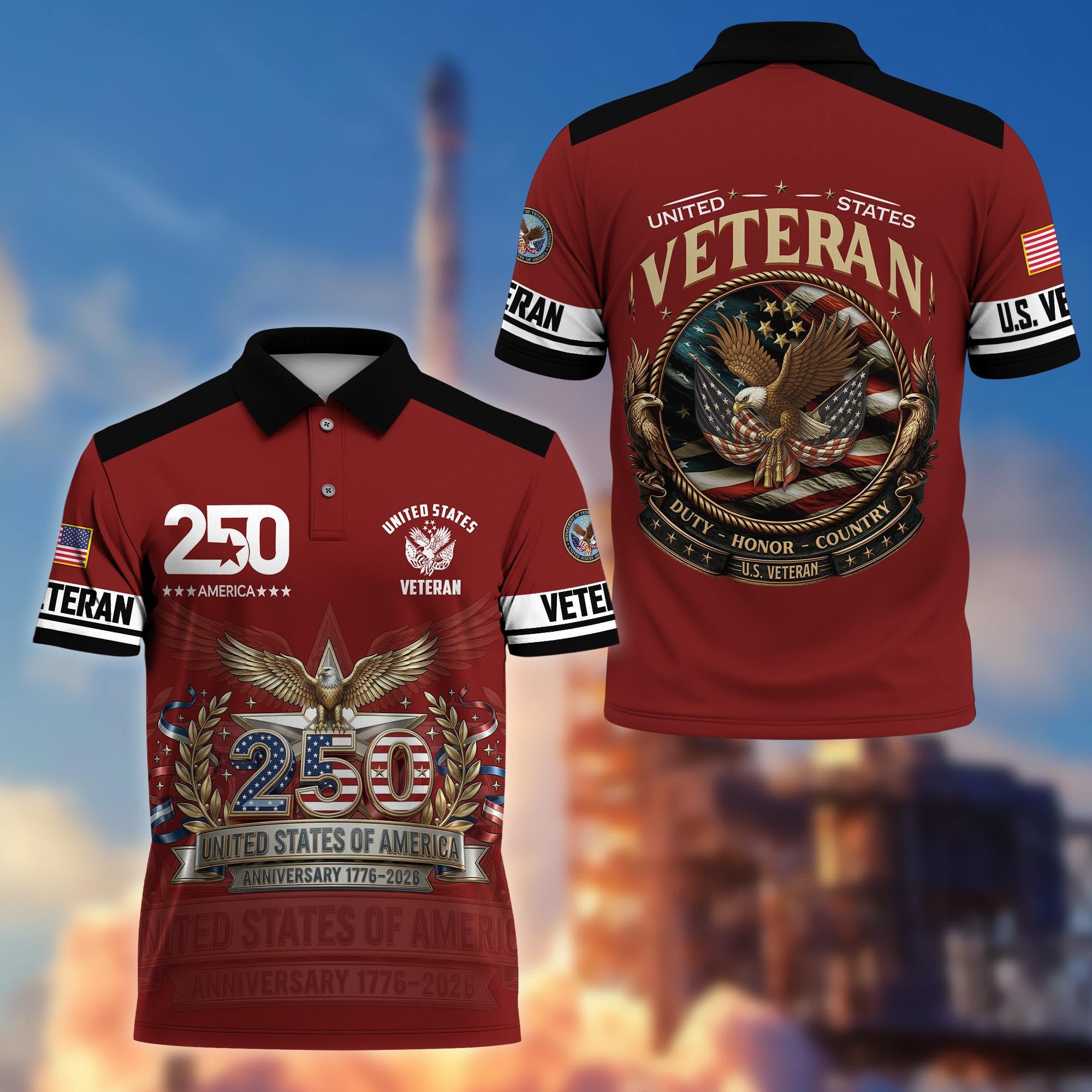 Premium America 250th Anniversary US Veteran Polo Shirt ATTN020221, Gifts for U.S. Veterans, Gifts for Independence Day, Veterans Day