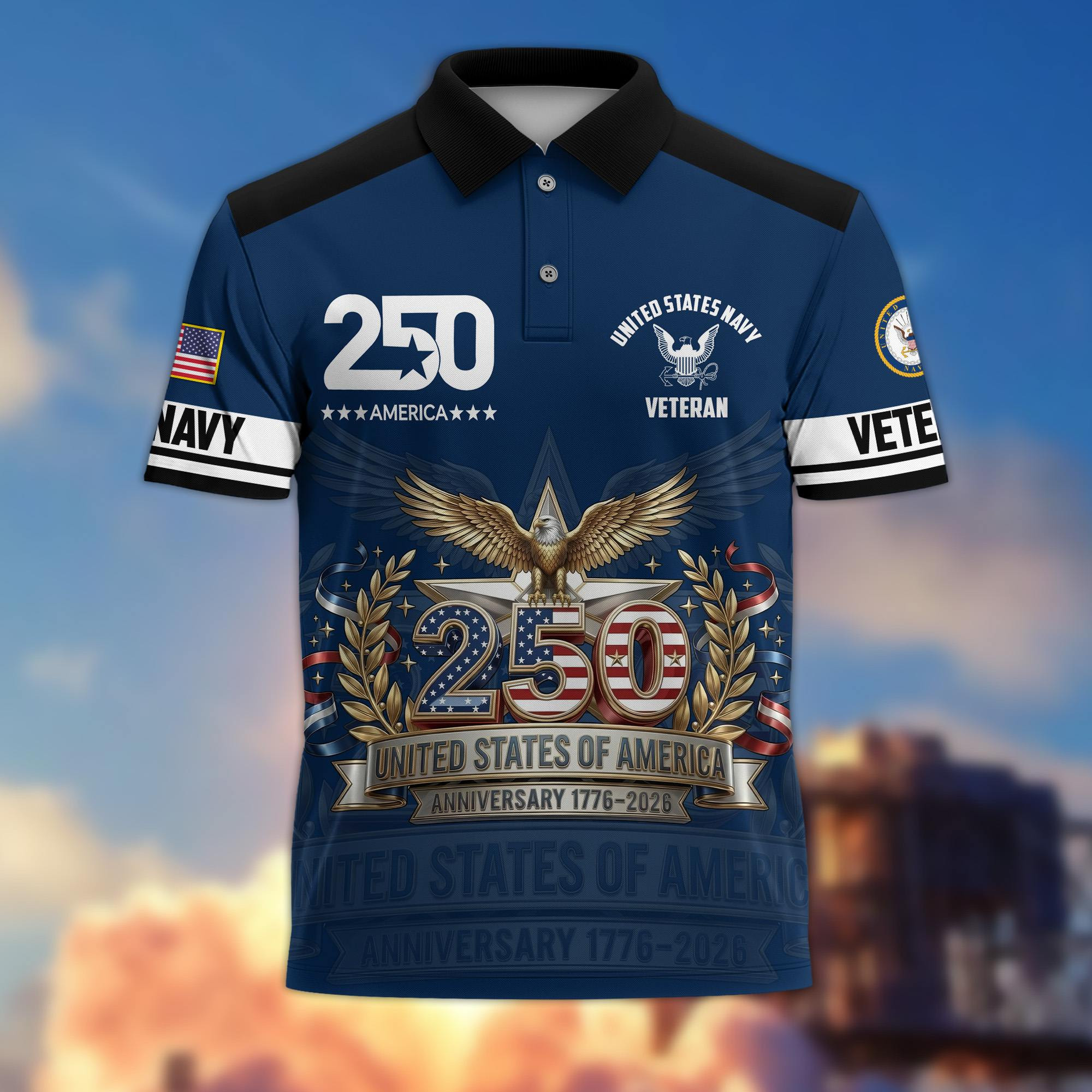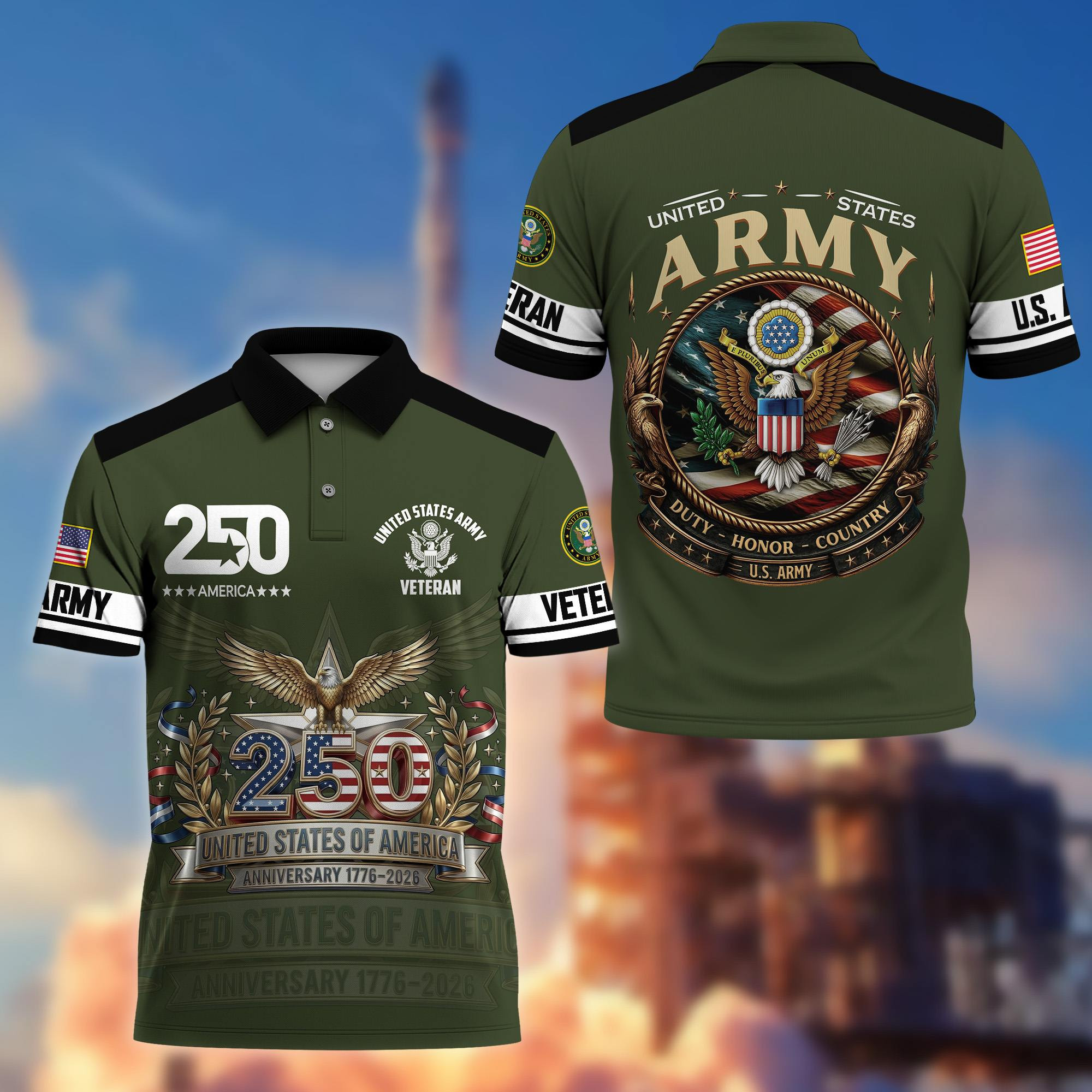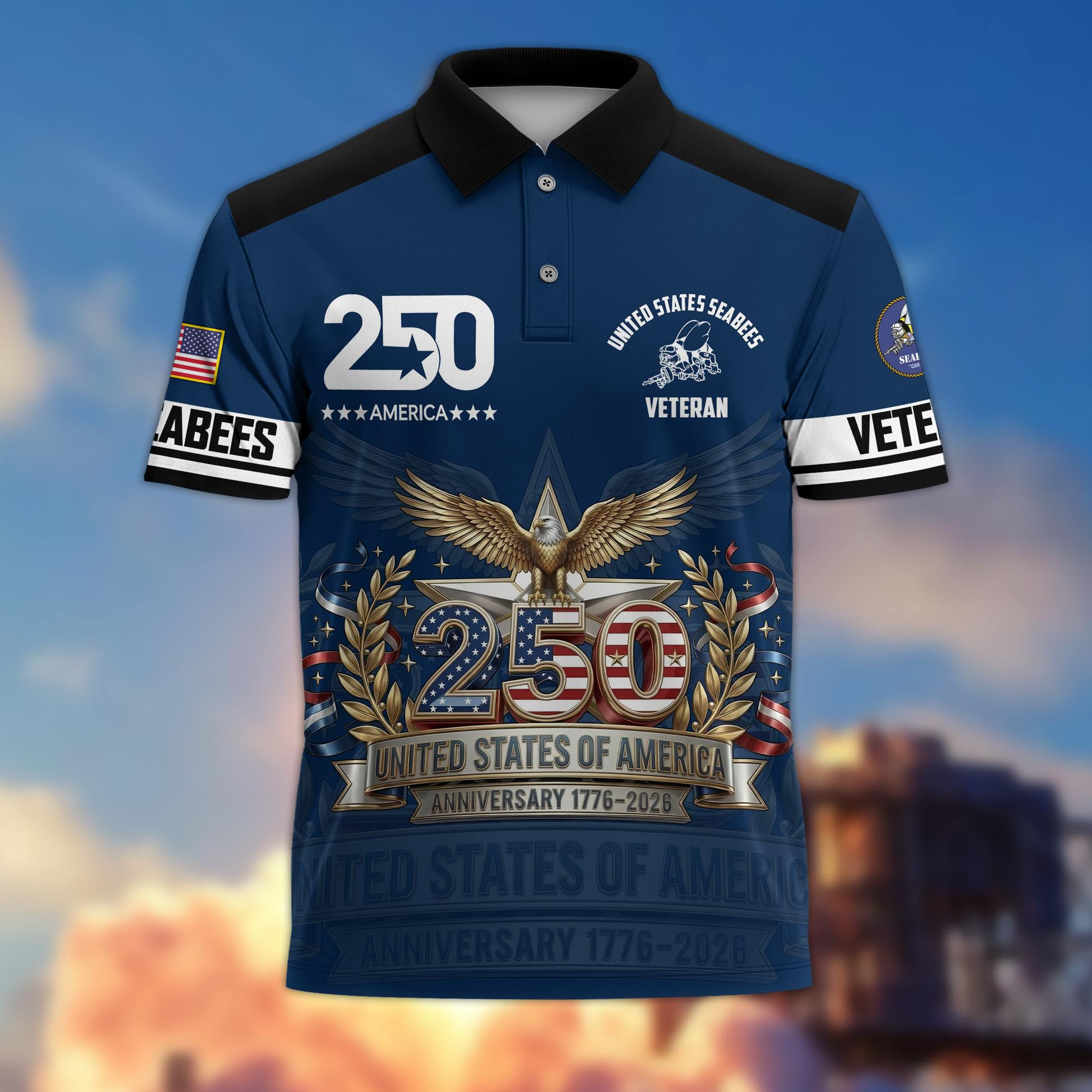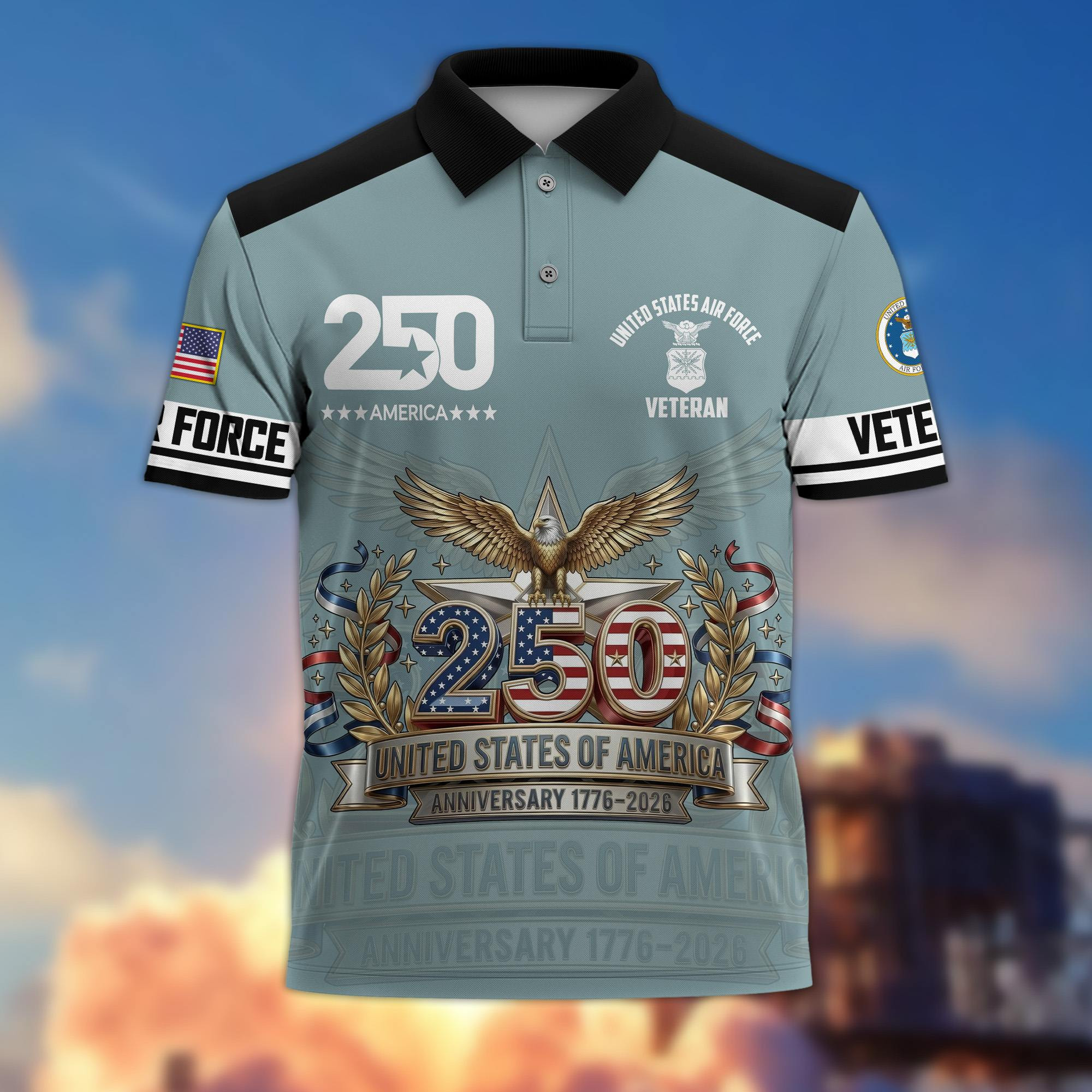 Premium America 250th Anniversary US Veteran Polo Shirt ATTN020221, Gifts for U.S. Veterans, Gifts for Independence Day, Veterans Day