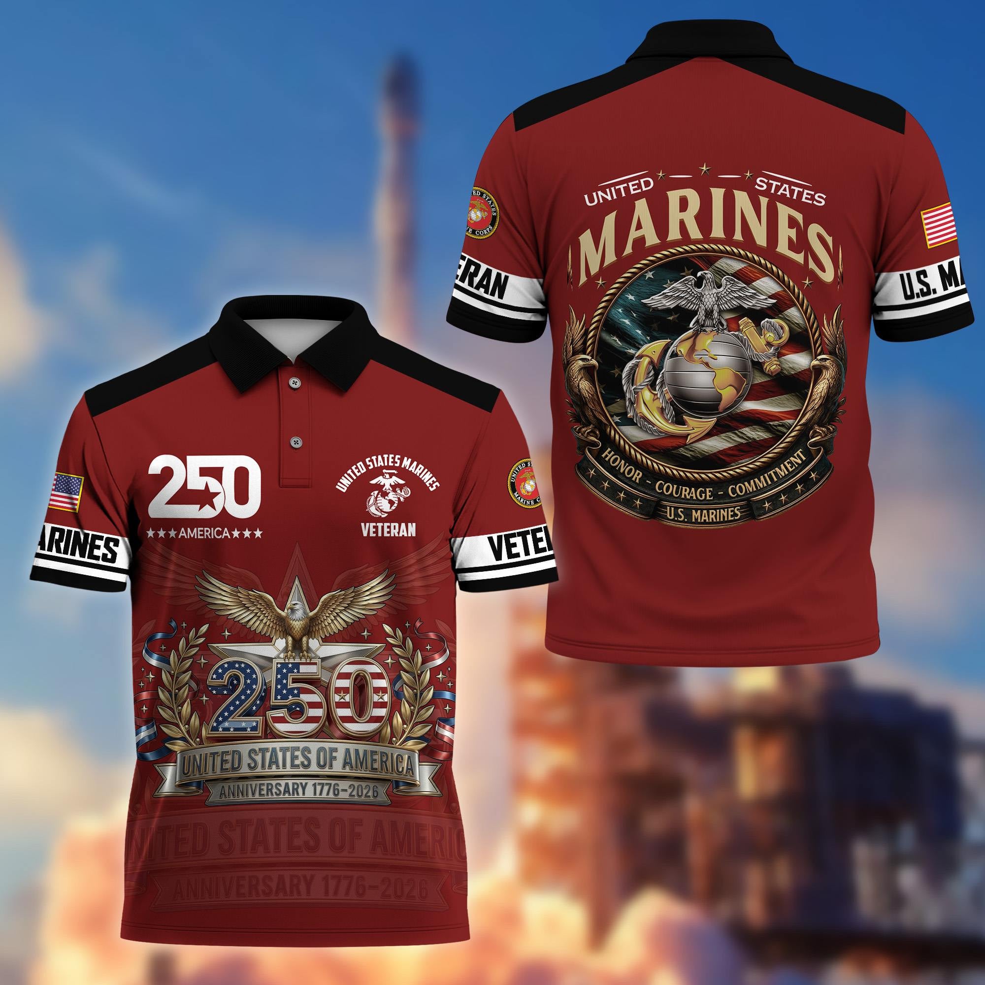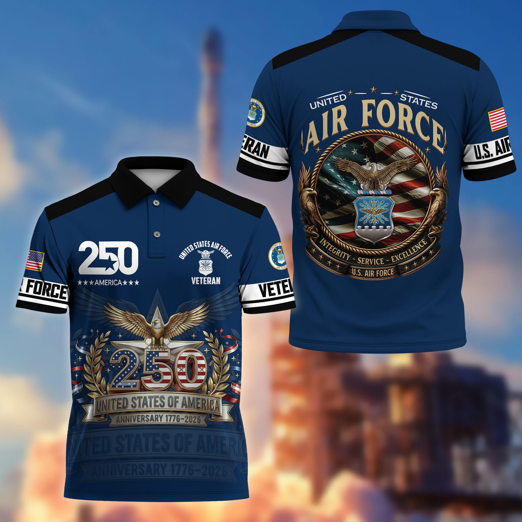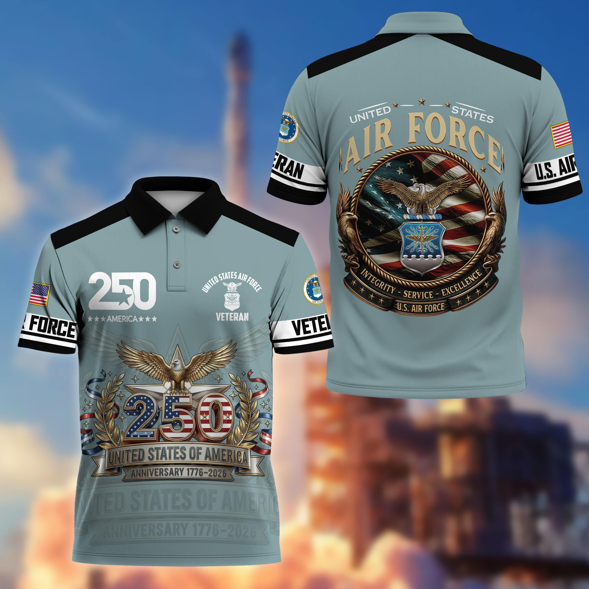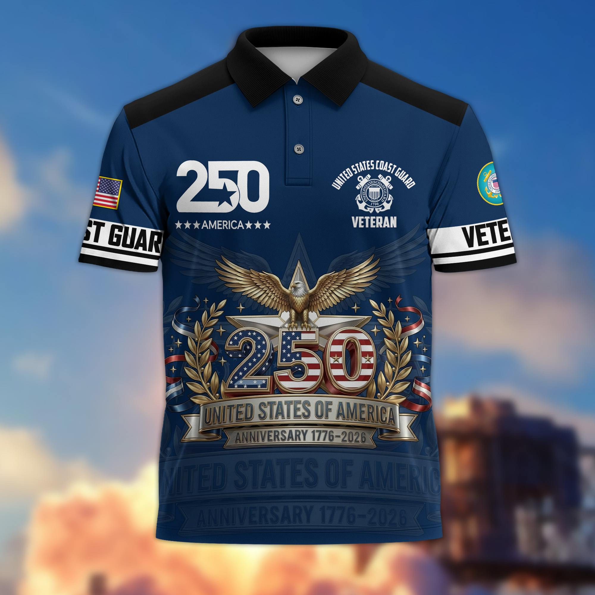 Premium America 250th Anniversary US Veteran Polo Shirt ATTN020221, Gifts for U.S. Veterans, Gifts for Independence Day, Veterans Day