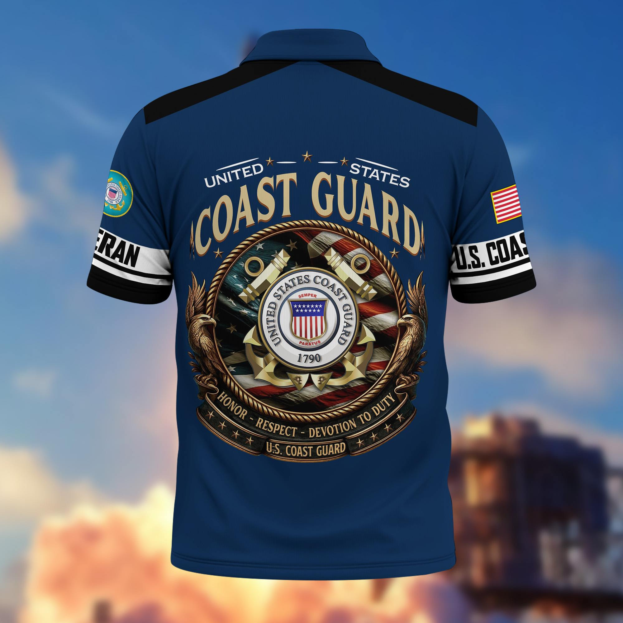USCG Polo Shirt, Custom Name, Rank, Gift For Coast Guard Veteran VPVC200005