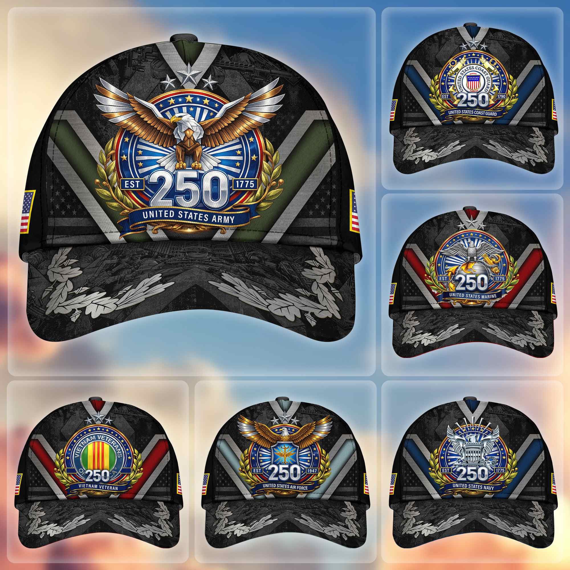 Premium America 250th Anniversary US Veterans Baseball Hats ATTN230321, Gifts For U.S. Veterans, Gifts For Independence Day, Veterans Day.