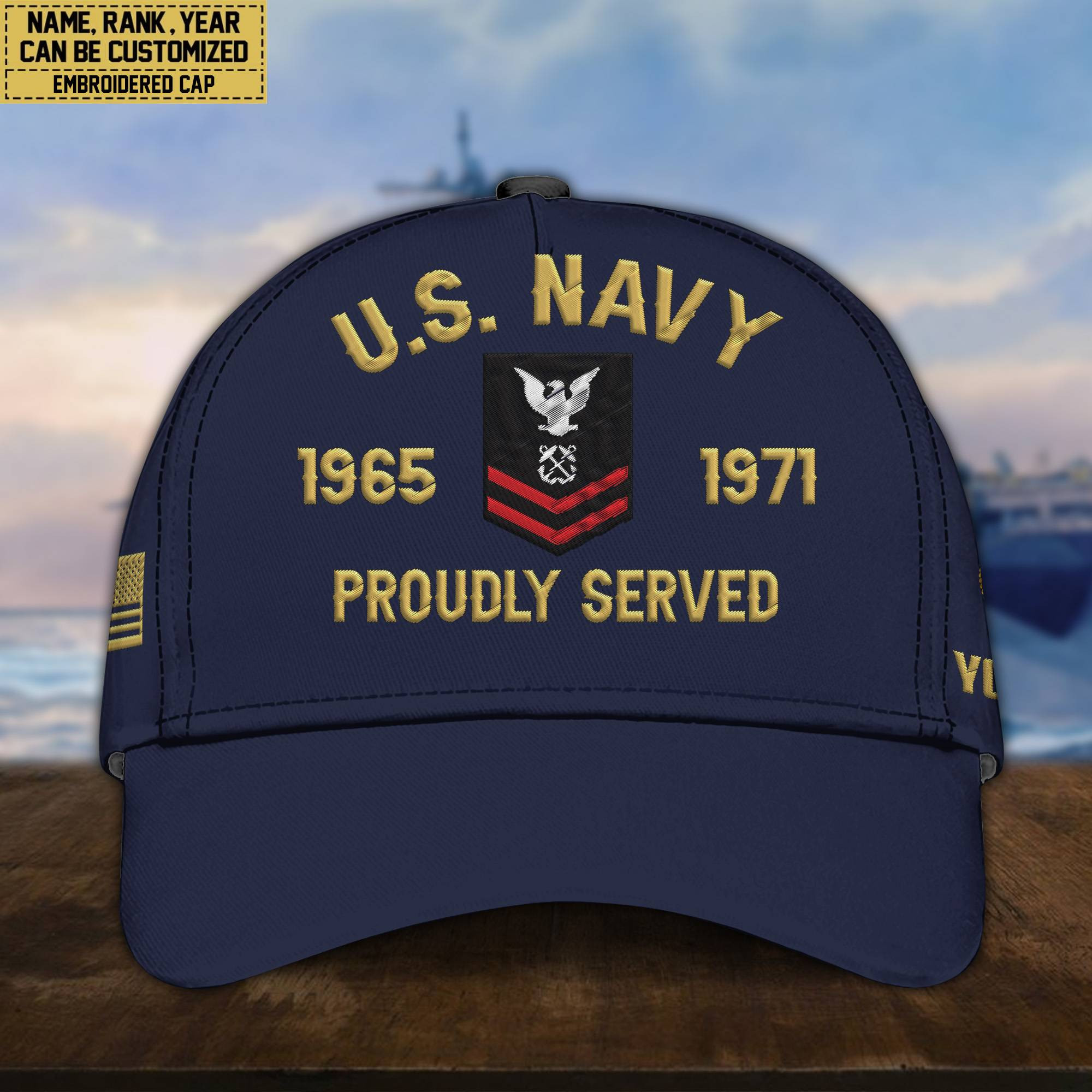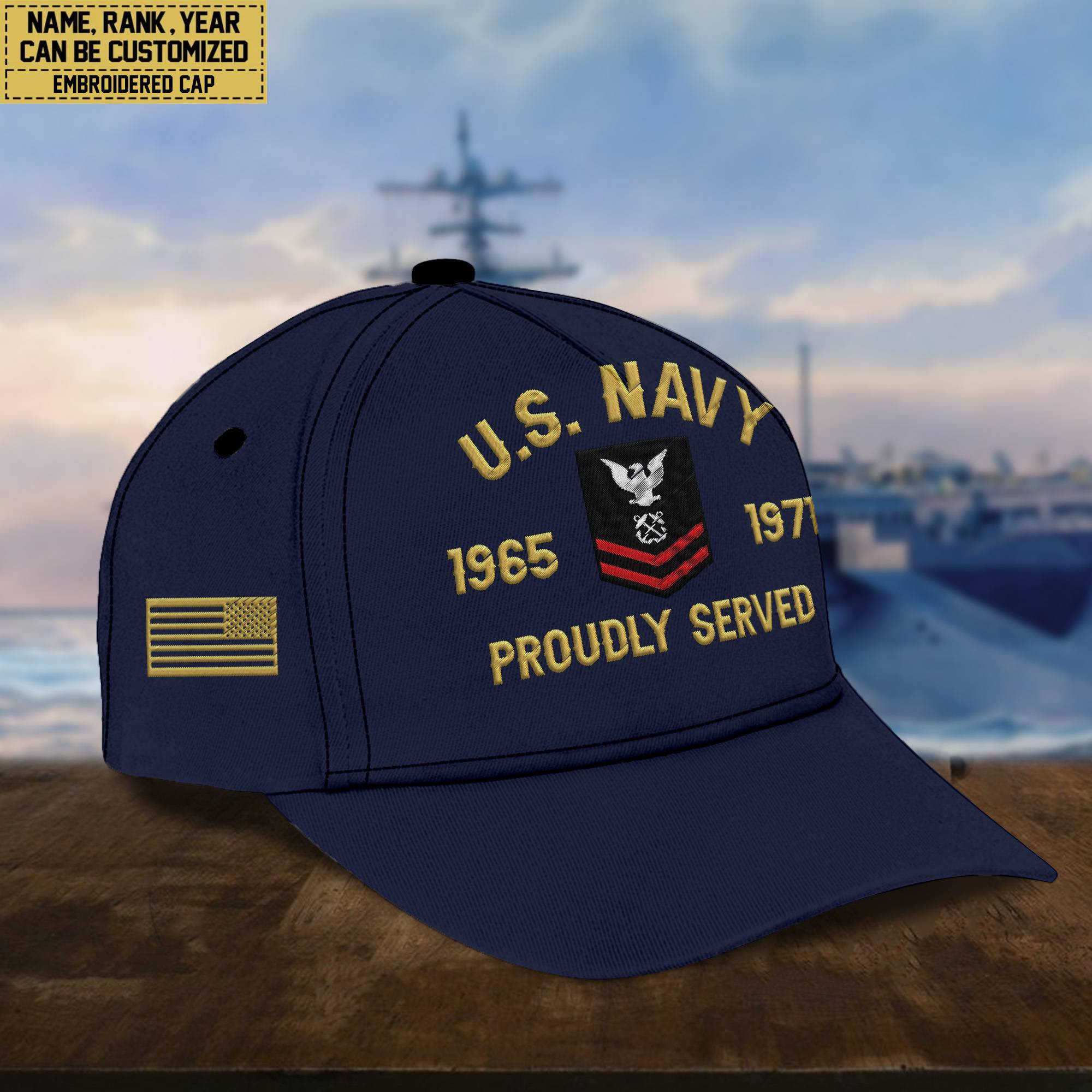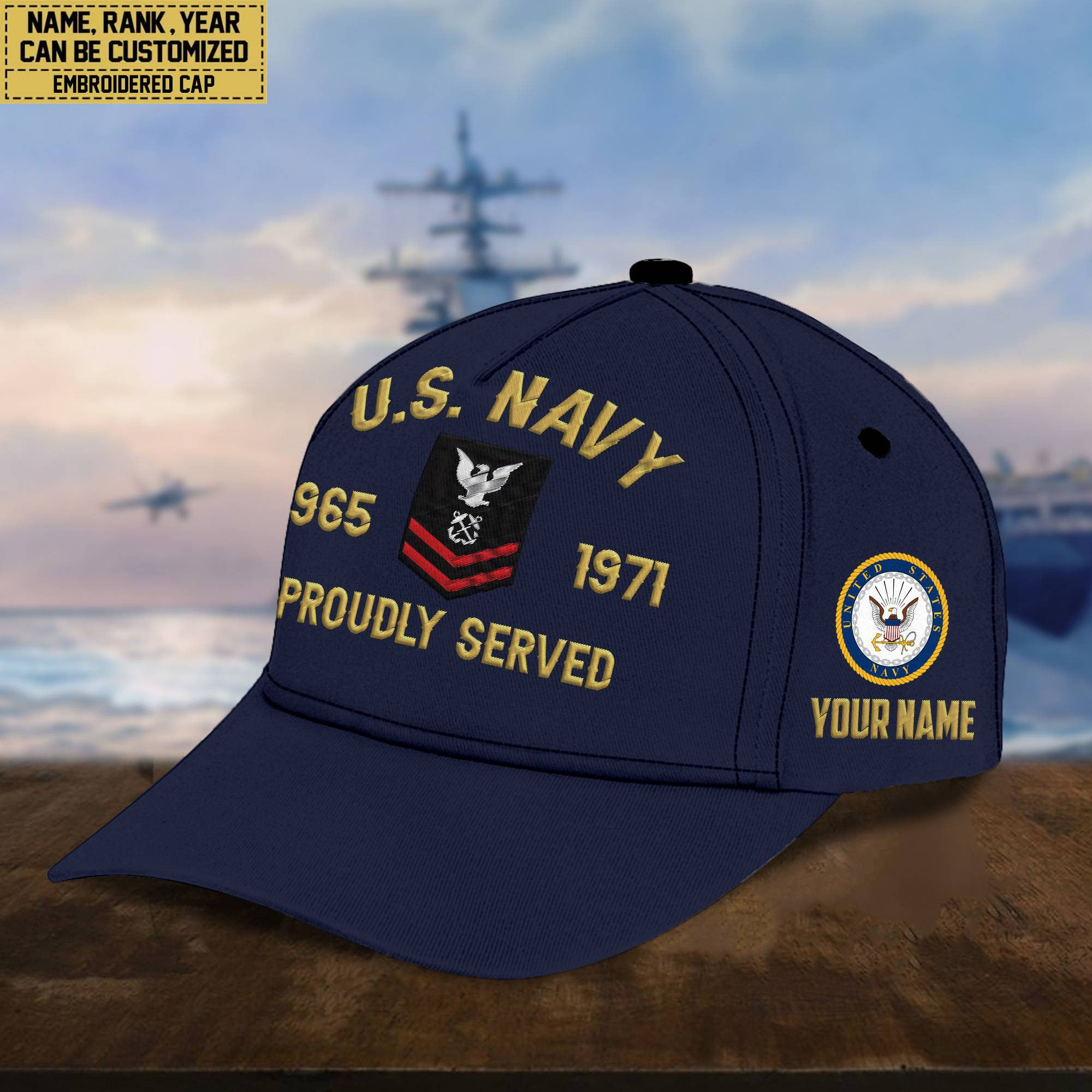 Premium Custom Name, Rank, US Navy Embroidered Cap, Hat for Navy Veteran, Gifts for Father’s Day, Veterans Day VPVC300502