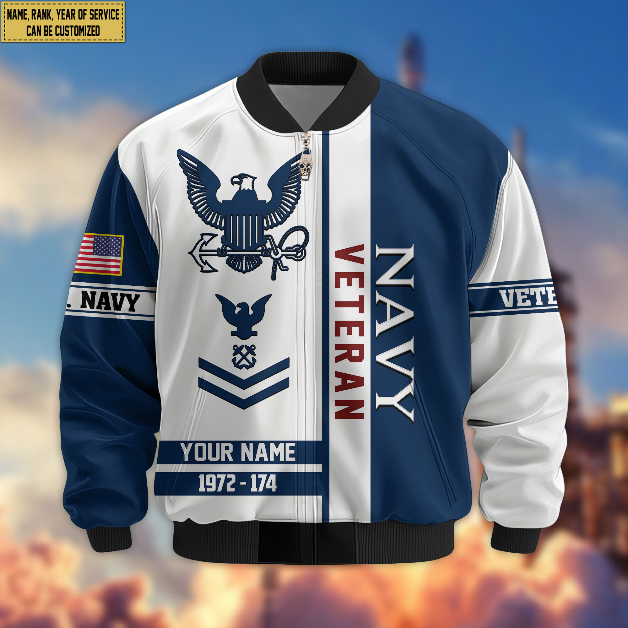 Premium Custom US Navy Veteran Bomber Jacket VPVC805002, Gifts For US Navy Veteran, Gifts On Father’s Day, Veterans Day.