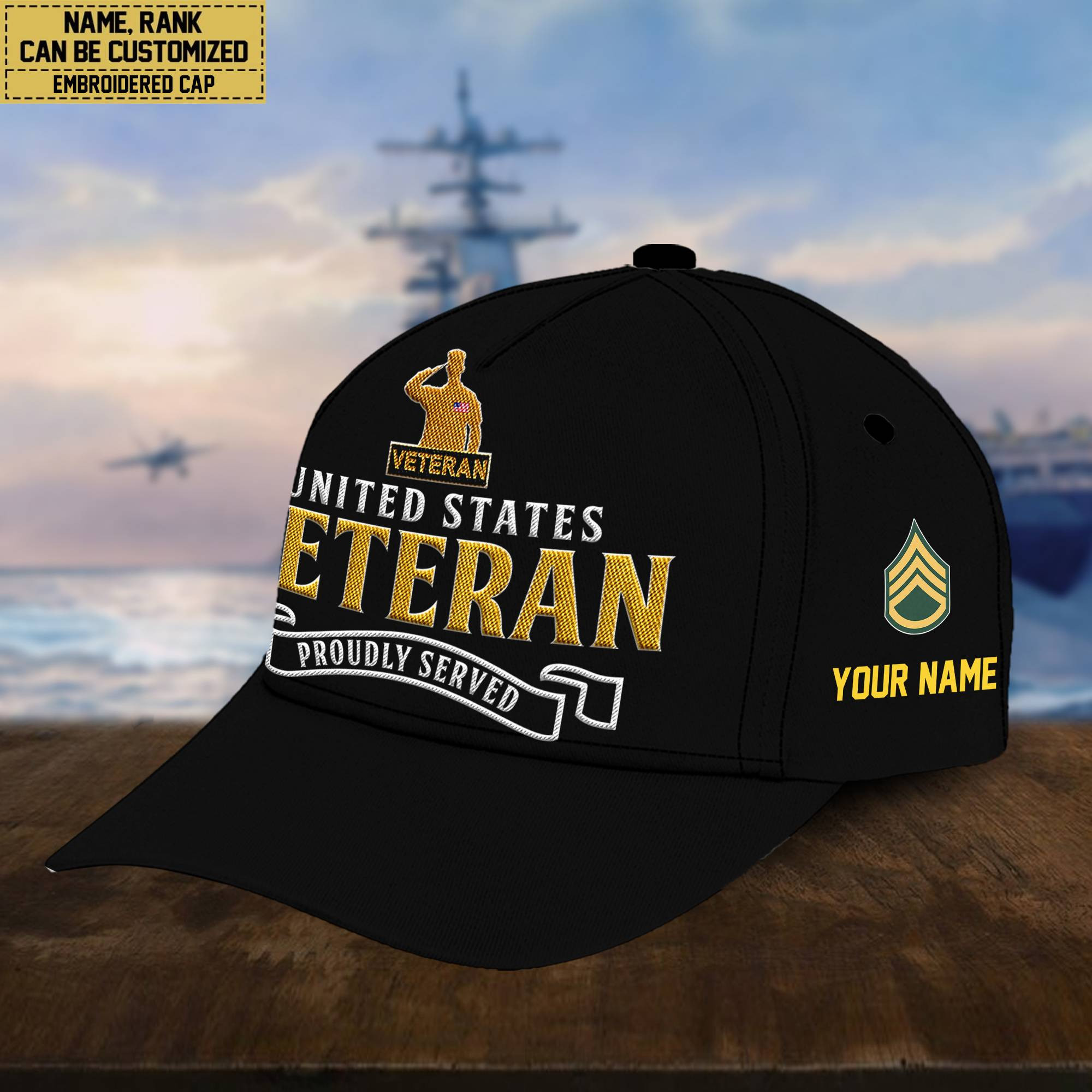 Premium Custom Name, Rank, Embroidered US Veterans Hats CPVC090704, 250th Anniversary, Gift For US Veterans, Gifts On Veterans Day.