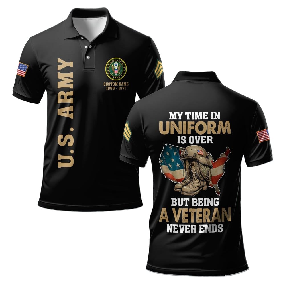 Premium My Time In Uniform Is Over But Being A Veteran Never Ends US Army Polo Shirt VPVC219230, Gifts For Army Veteran, Gifts For Veterans Day.