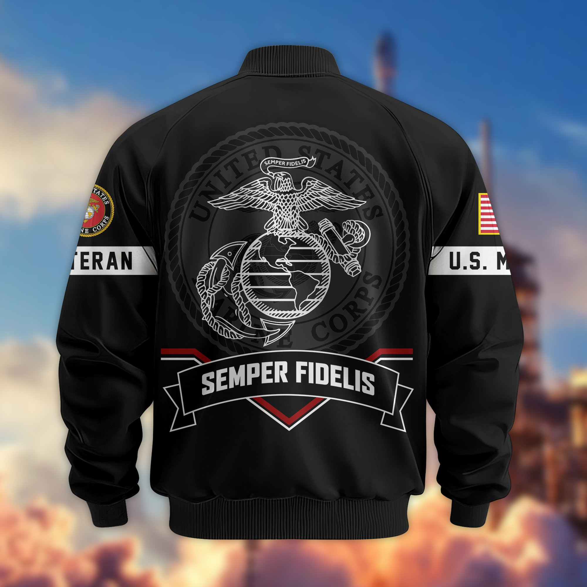 Premium Custom USMC Veteran Bomber Jacket VPVC803203, Gifts For US Marine Veteran, Gifts On Father’s Day, Veterans Day.