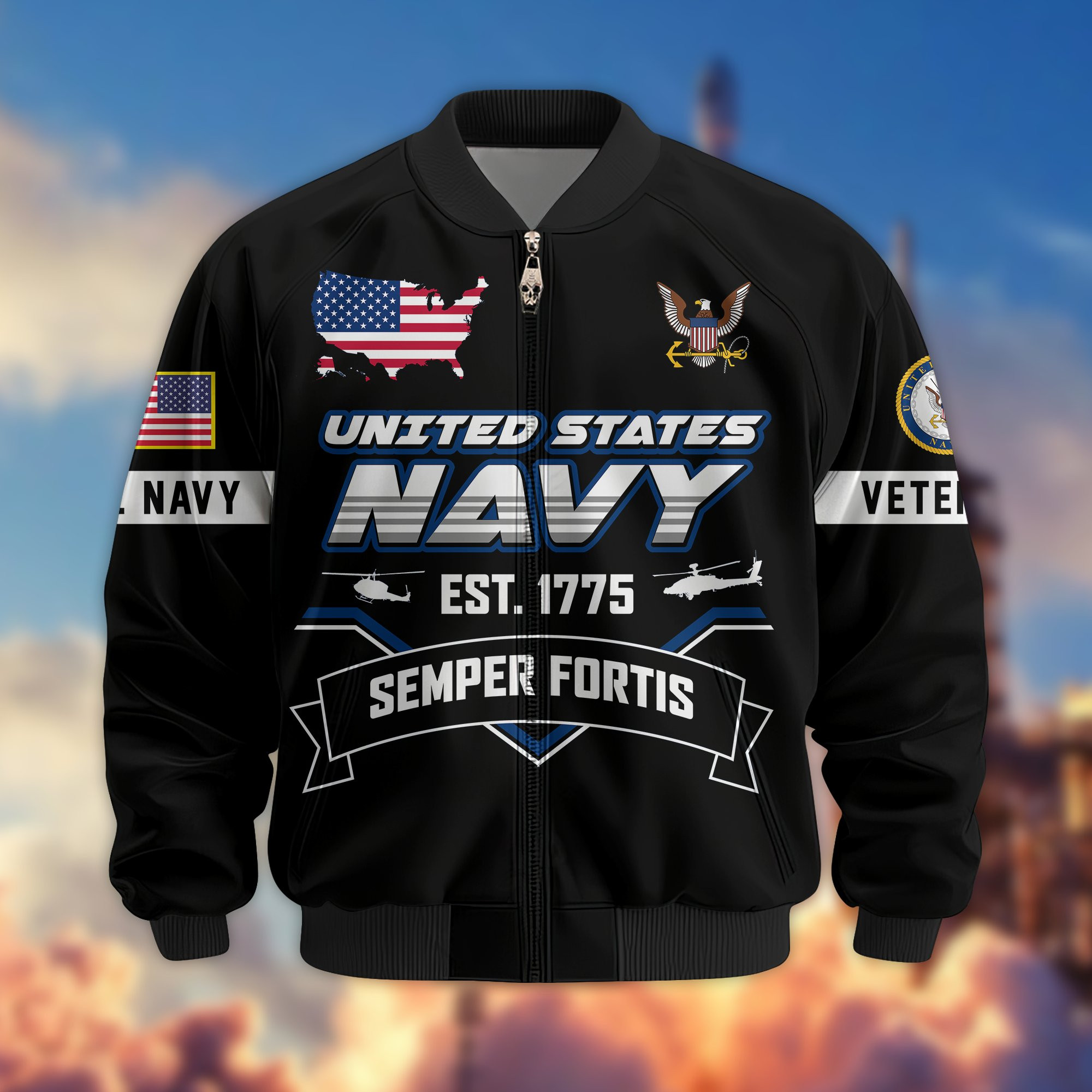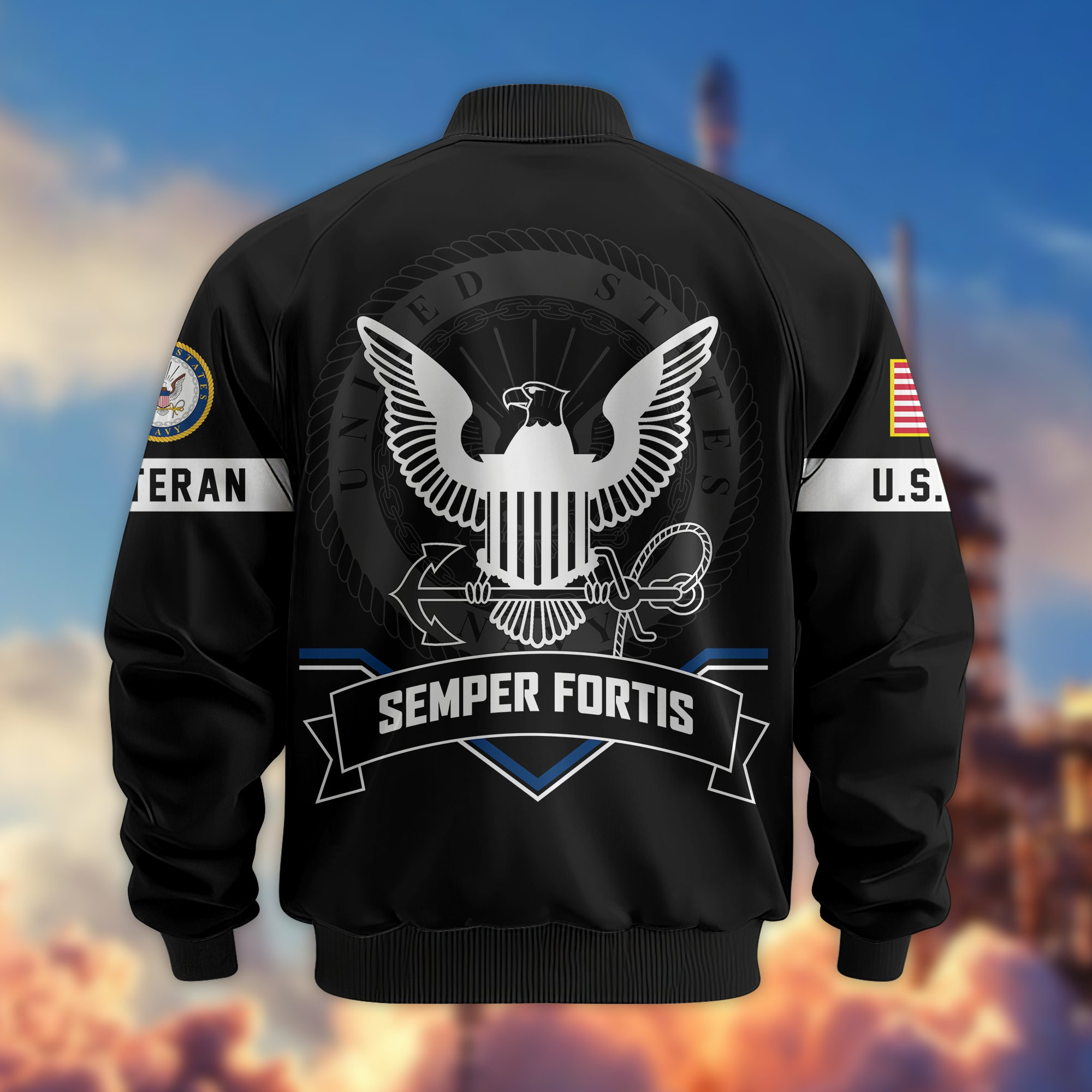 Premium Custom US Navy Veteran Bomber Jacket VPVC805002, Gifts For US Navy Veteran, Gifts On Father’s Day, Veterans Day.