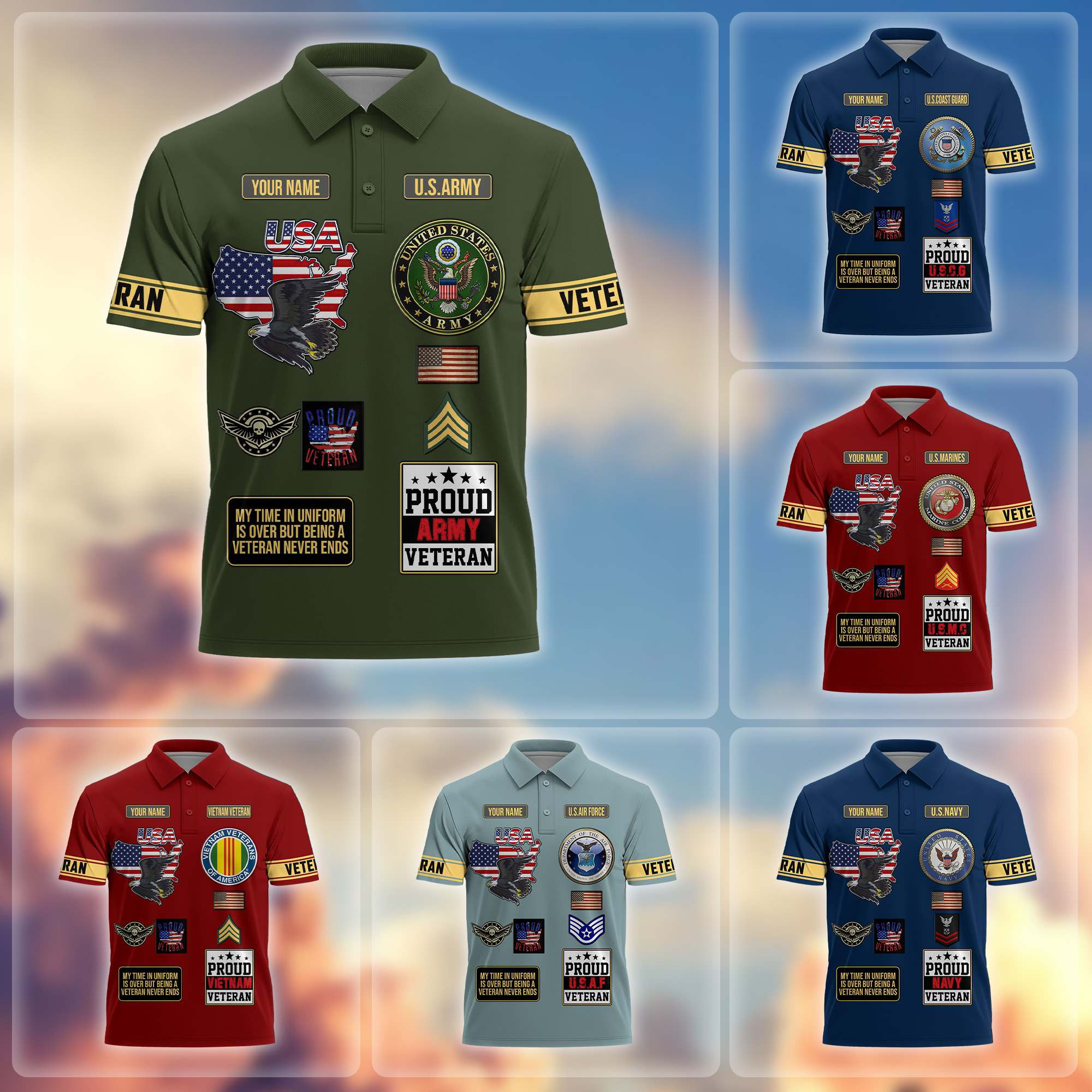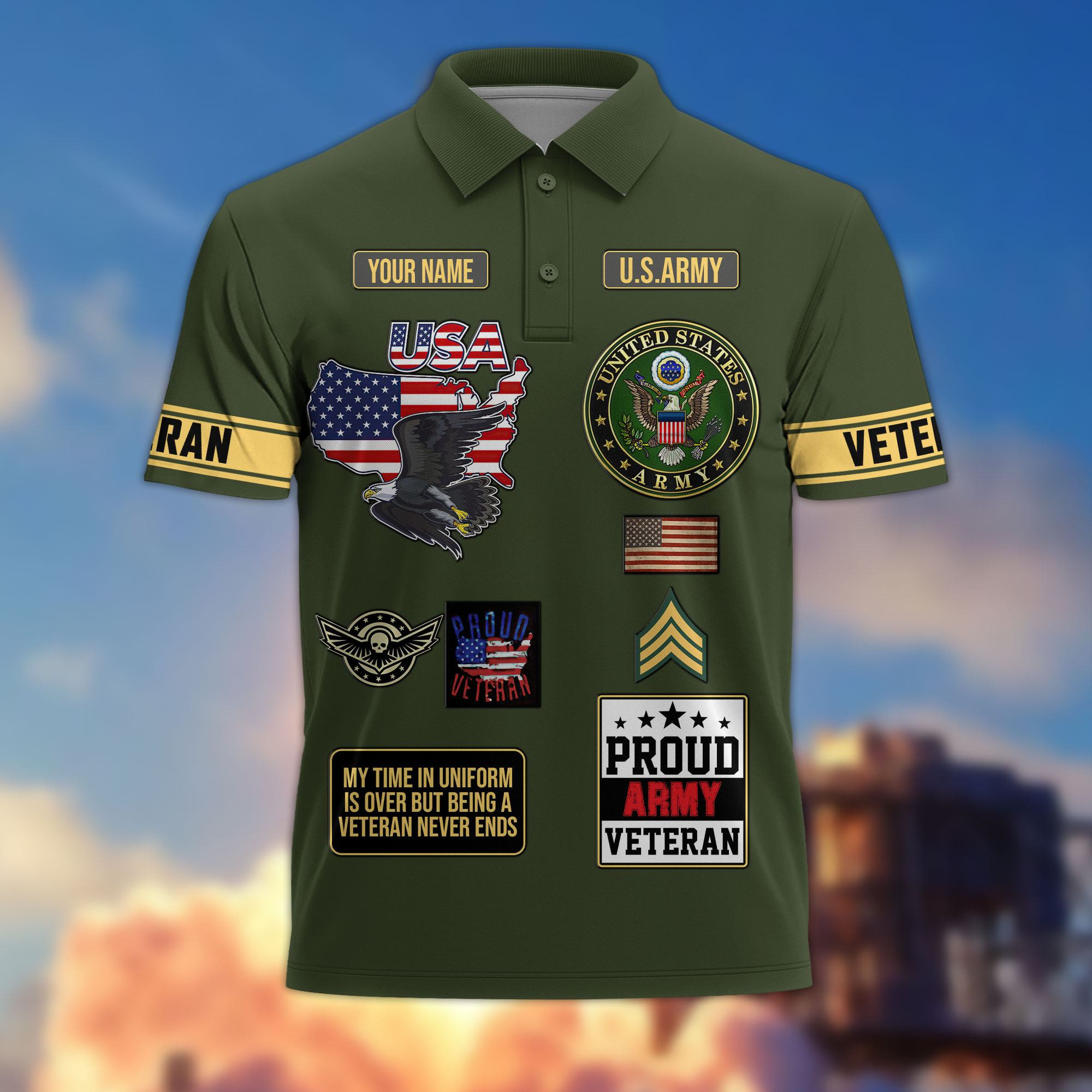 Premium My Time In Uniform Is Over But Being A Veteran Never Ends US Army Polo Shirt VPVC219230, Gifts For Army Veteran, Gifts For Veterans Day.