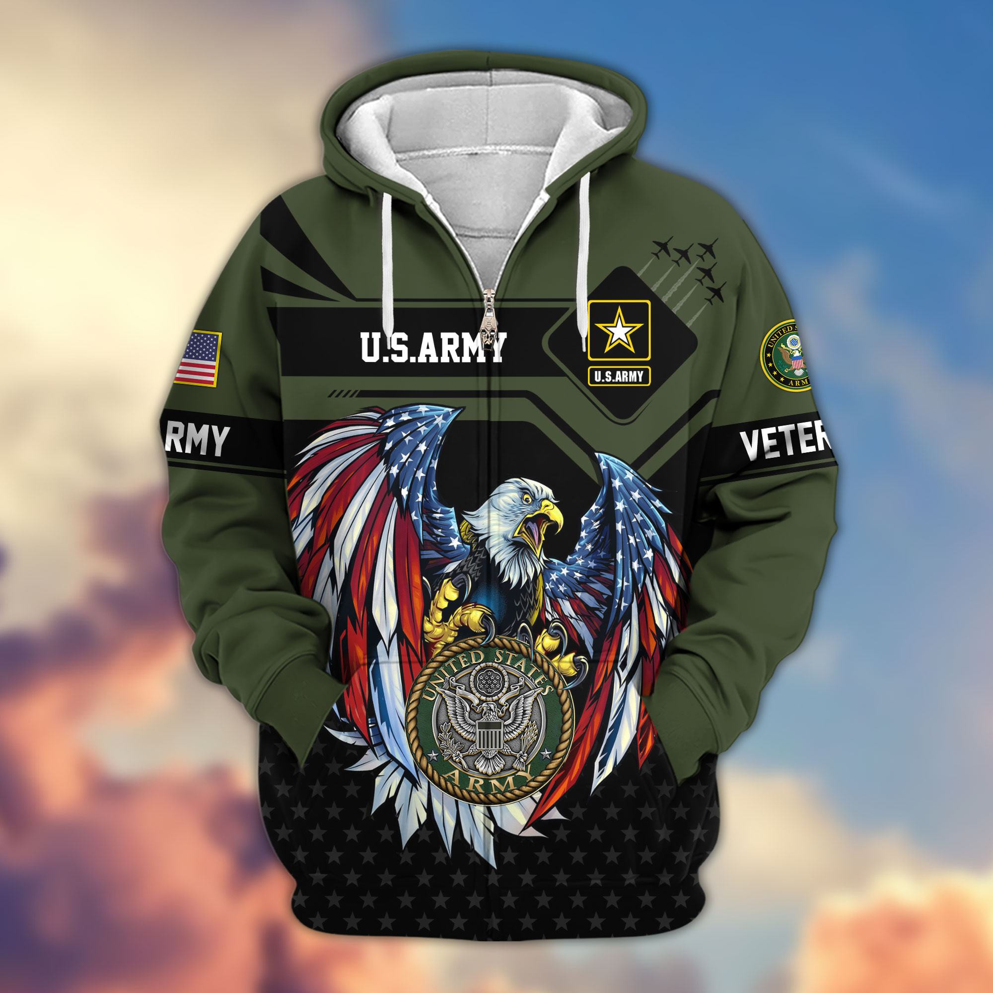 Premium US Veterans Zip Hoodie ATTN011023, Gifts For US Veterans, Gifts On Father’s Day, Veterans Day.