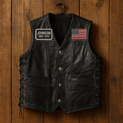 Premium US Veterans Custom Leather Motor Vest VPVC702138, Gifts For US Veteran, Gifts On Father’s Day, Veterans Day.