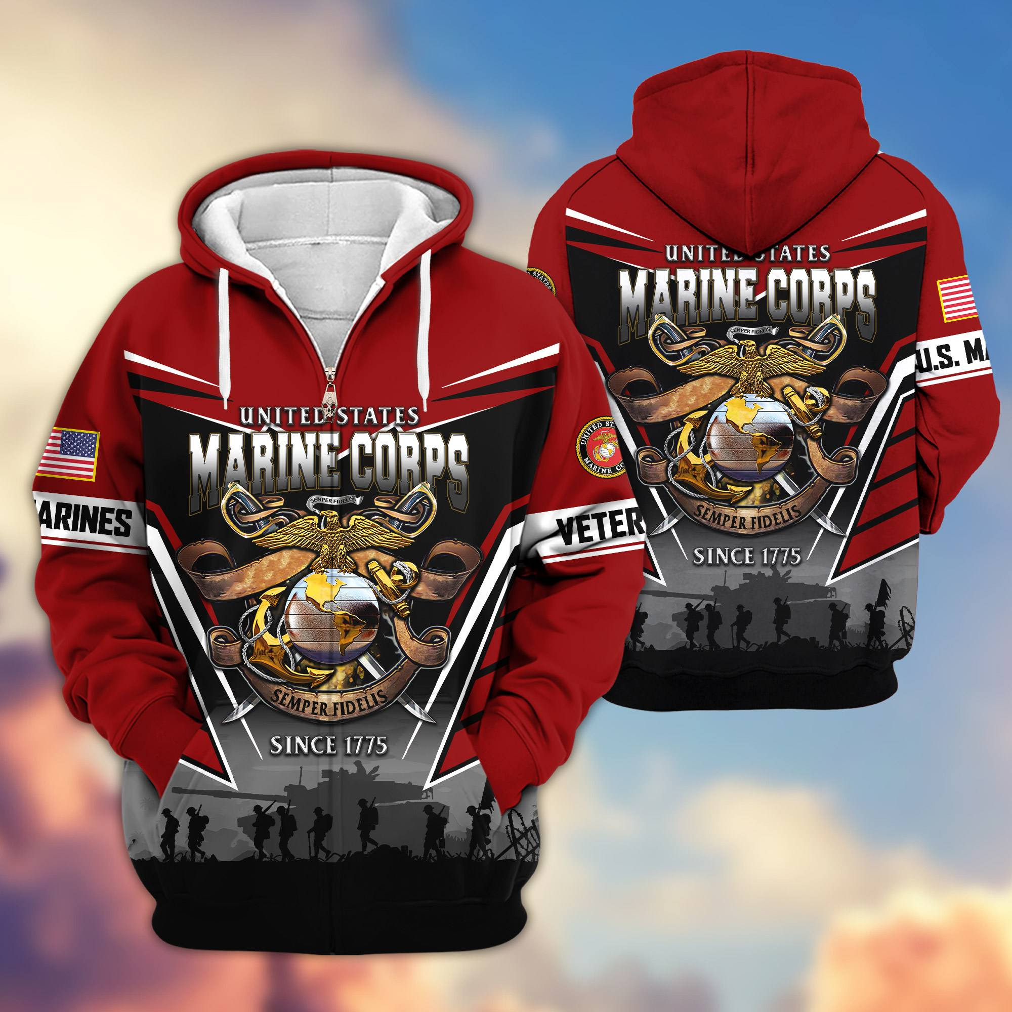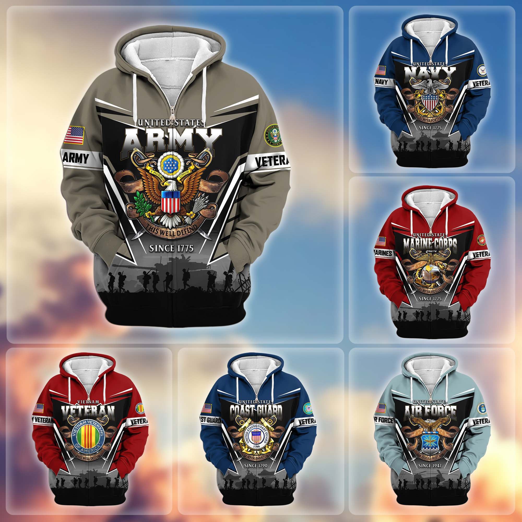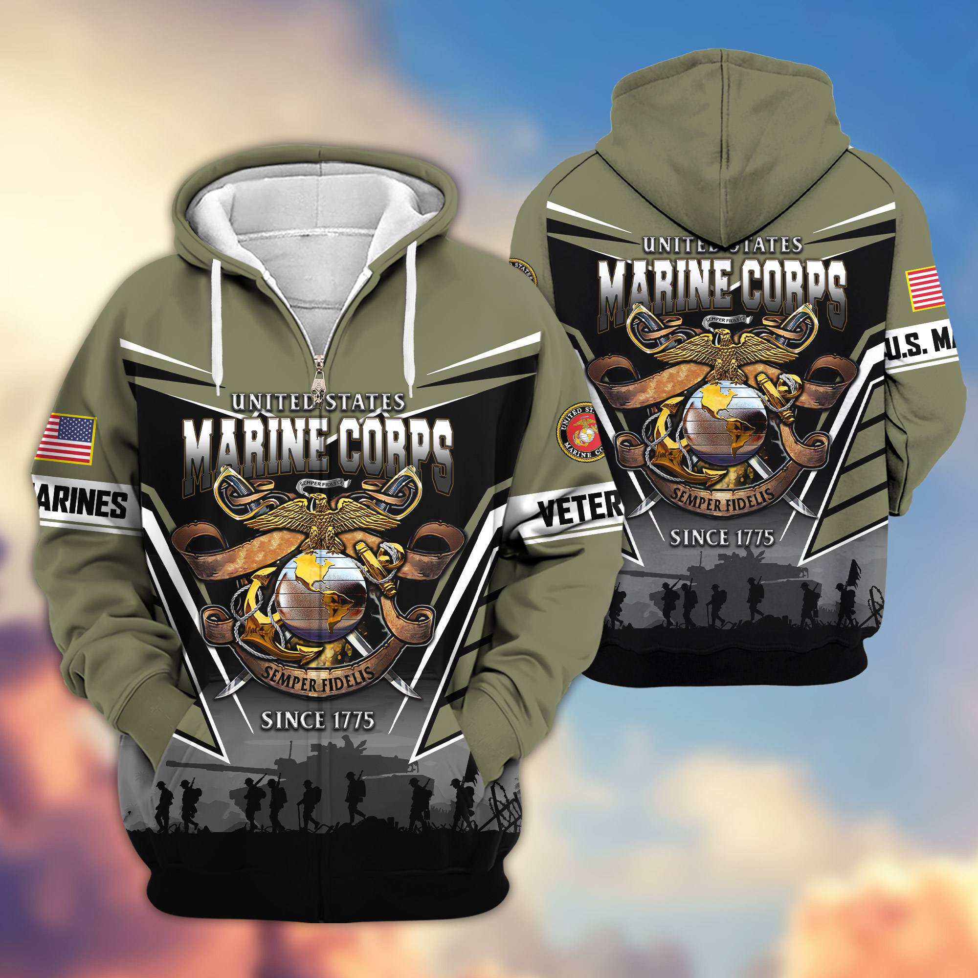 Premium US Veterans Zip Hoodie ATTN291023, Gifts For US Veterans, Gifts On Father’s Day, Veterans Day.