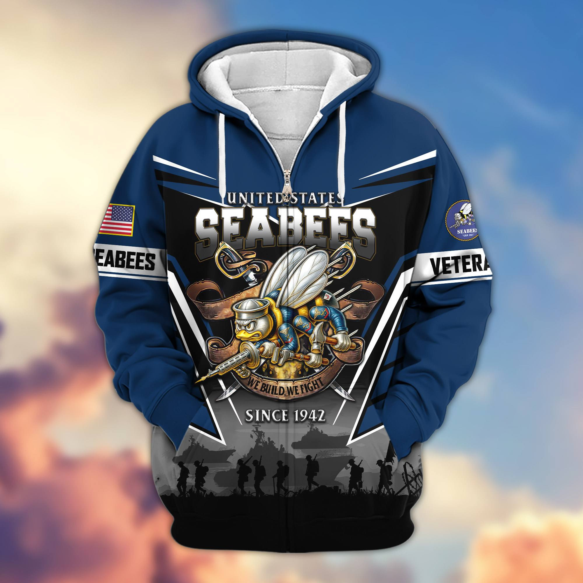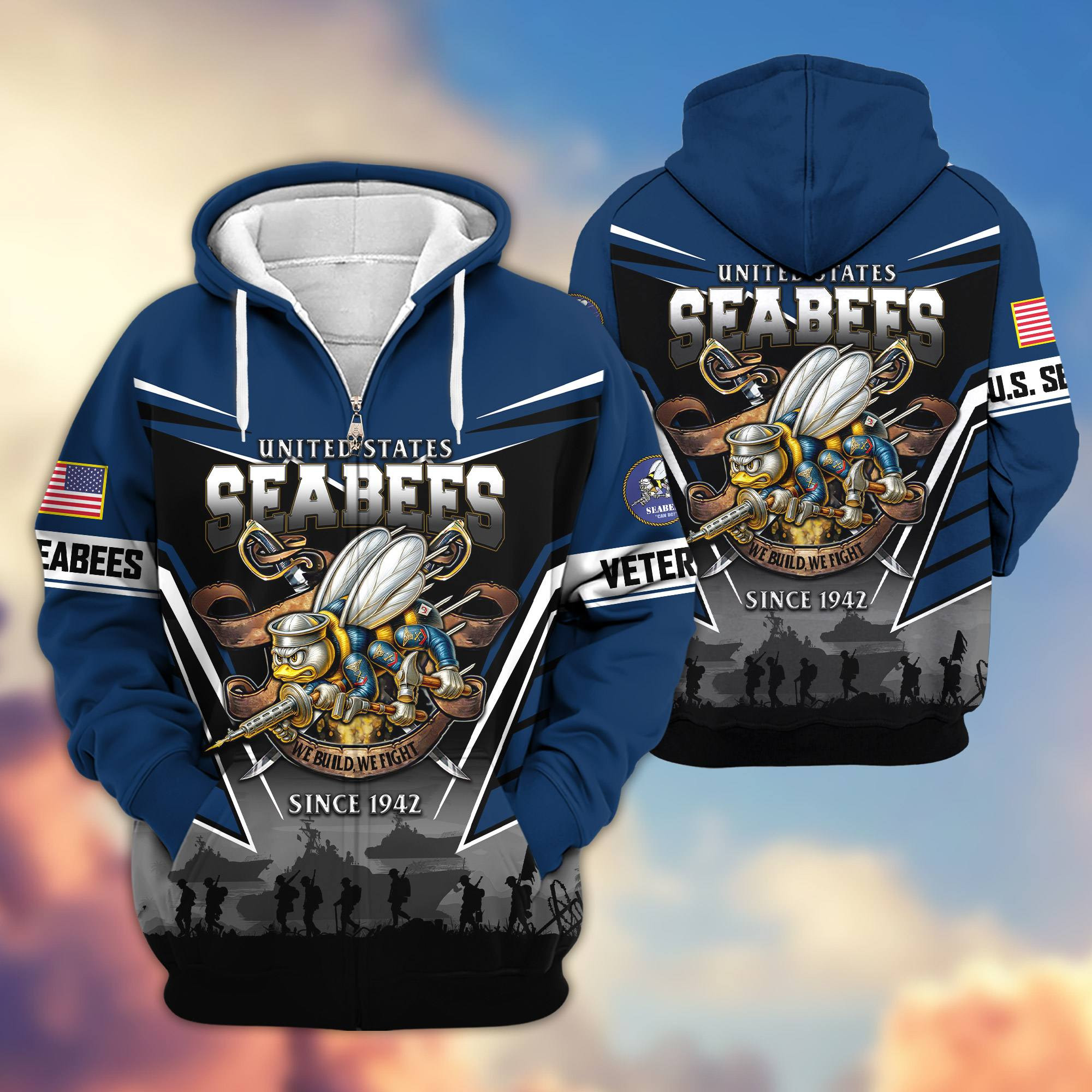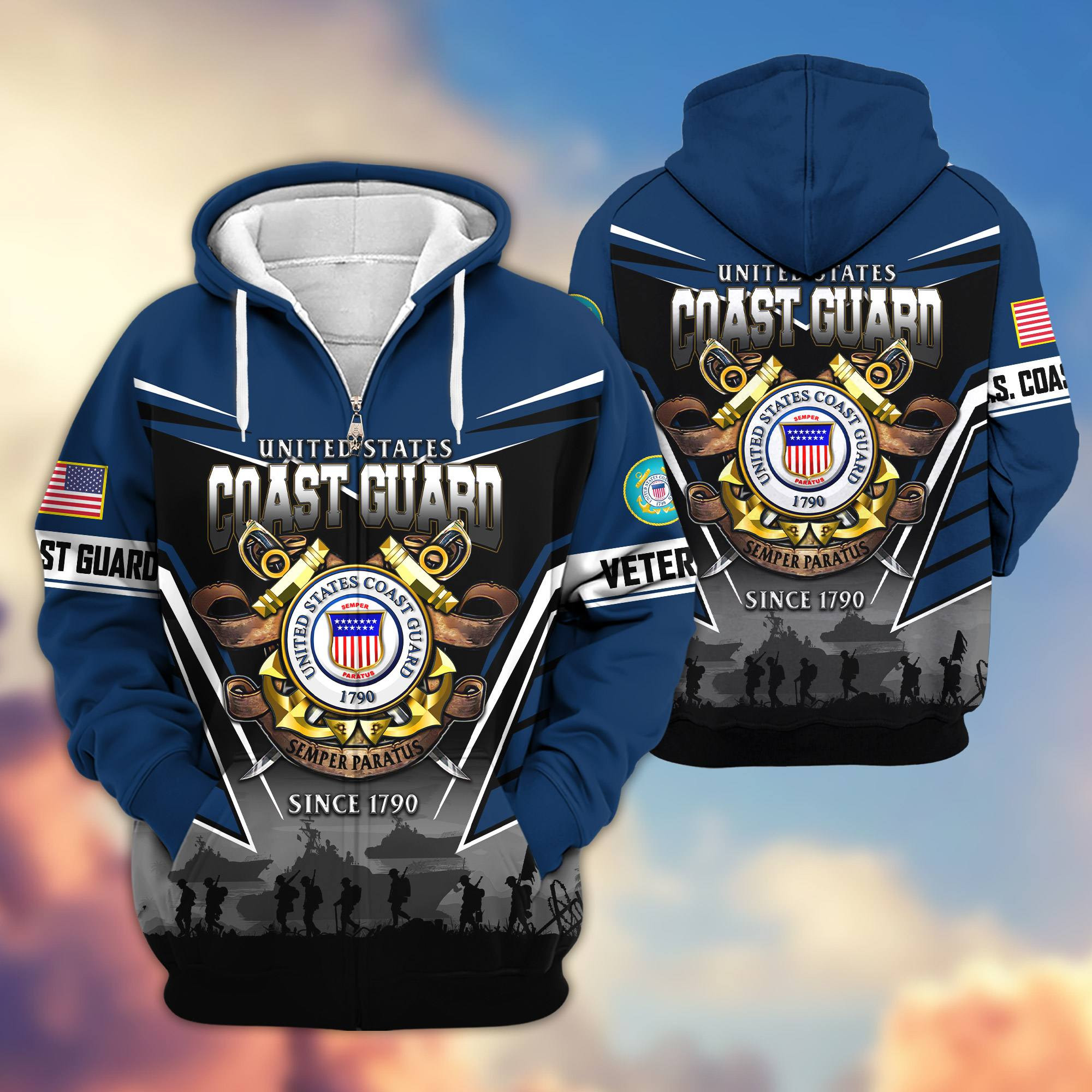 Premium US Veterans Zip Hoodie BPHN241111, Gifts For US Veterans, Gifts On Father’s Day, Veterans Day.