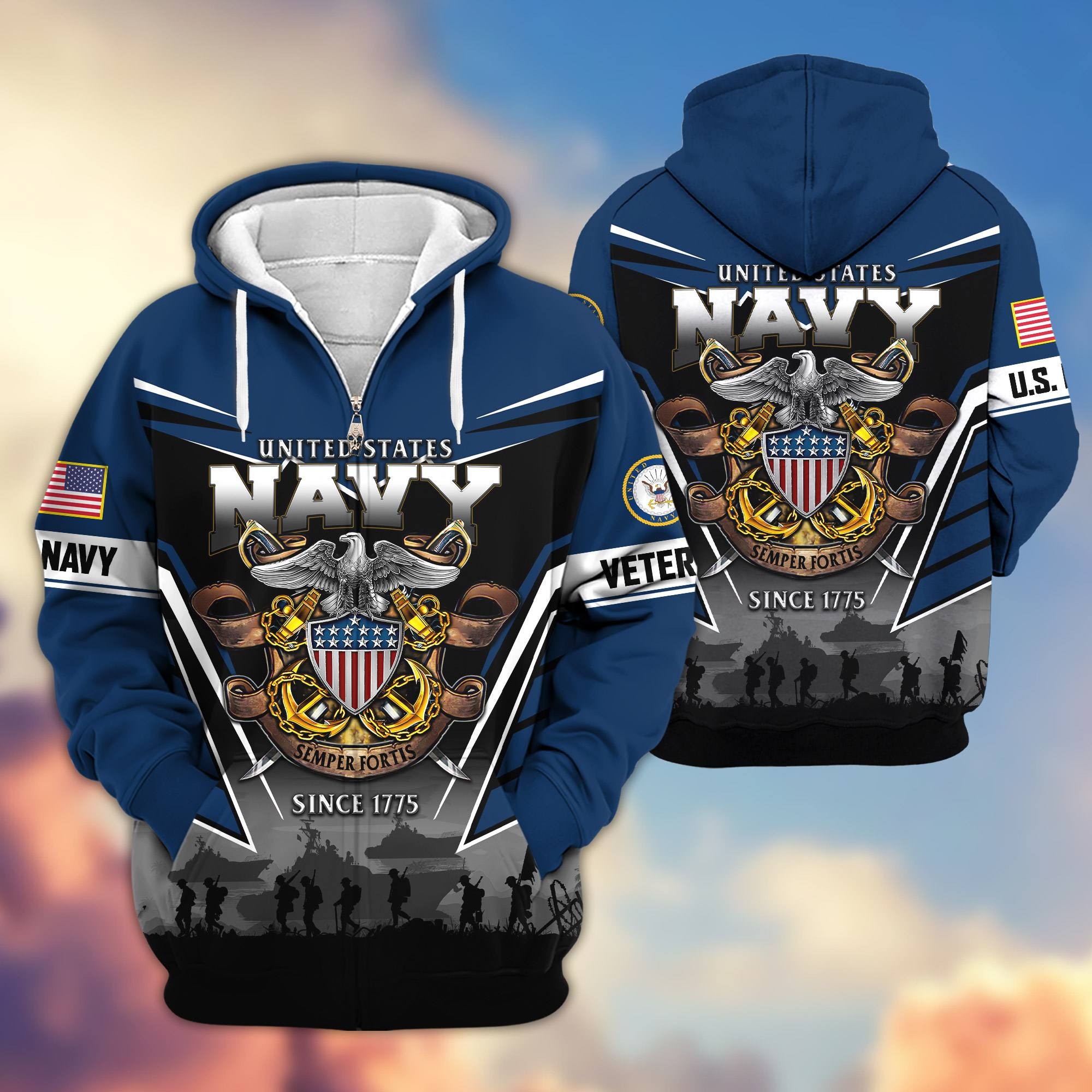 Premium US Navy Veteran Zip Hoodie VPVC605402, Gifts For Navy Veteran