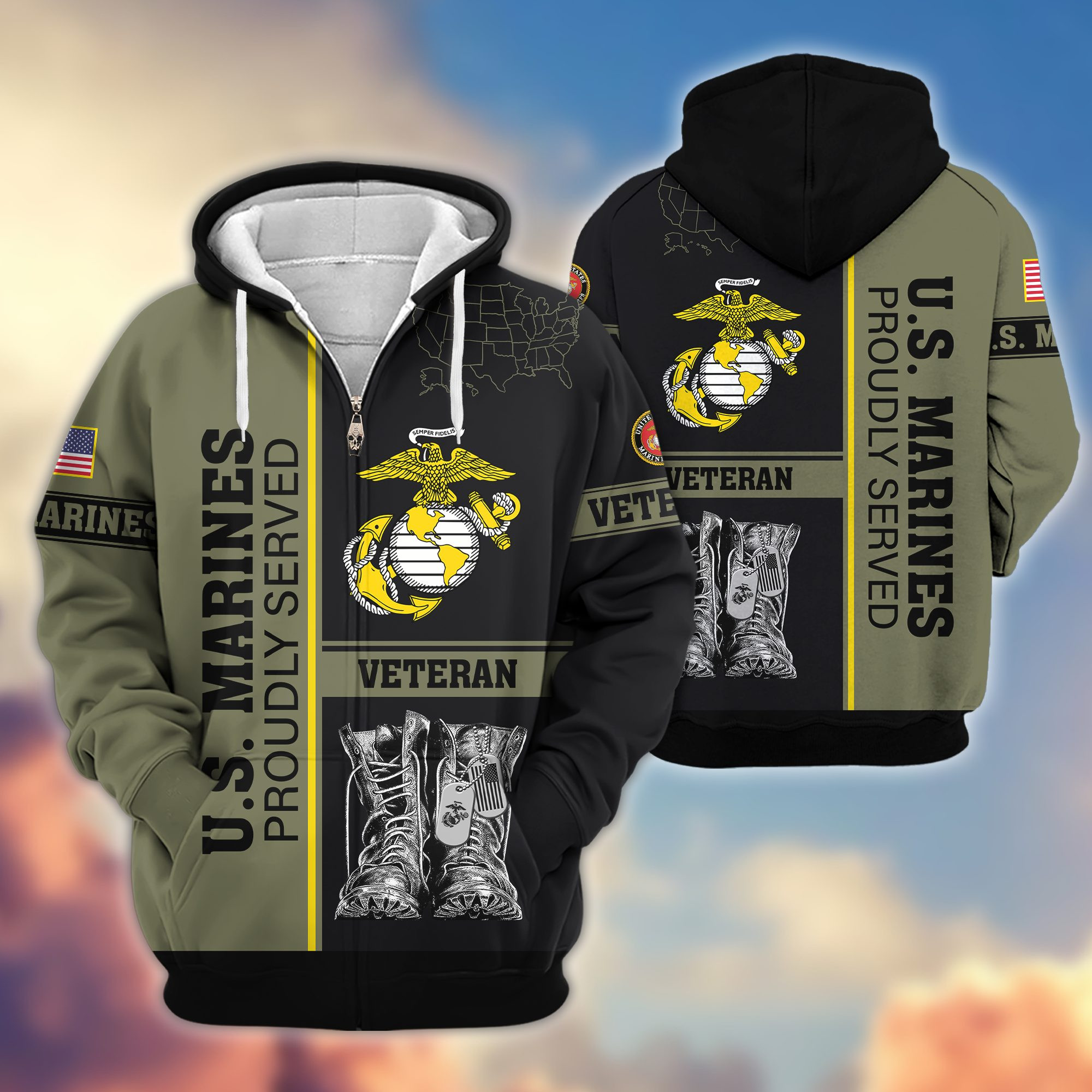 Premium US Veterans Zip Hoodie BPHN100911, Gifts For US Veterans, Gifts On Father’s Day, Veterans Day.