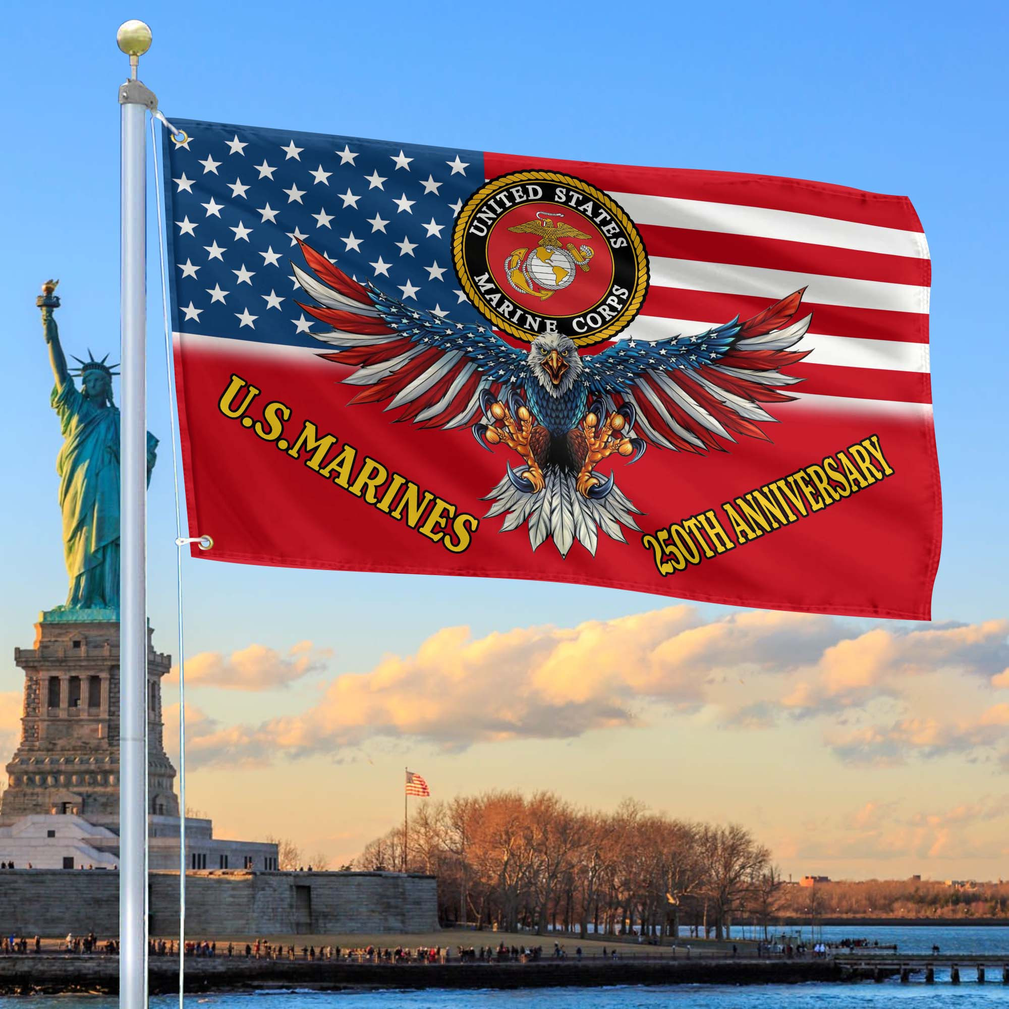 Premium USMC Grommet Flag VPVC120021, 250th Anniversary Marine Corps Flag, Gifts For Marine Veteran, Best Gifts On Father’s Day, Veterans Day.