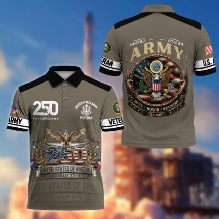 Premium America 250th Anniversary US Veteran Polo Shirt ATTN020221, Gifts for U.S. Veterans, Gifts for Independence Day, Veterans Day